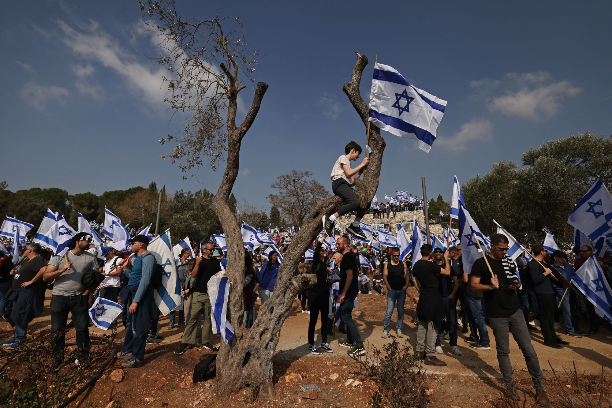 摄影师:Ahmad Gharabli/AFP/Getty Images以色列总理 本雅明·内塔尼亚胡的政府,一个由右翼和宗教政党组成的联合政府,于去年12月上台,将彻底改革国家司法系统列为首要任务。政府已经采取的措施和计划引发了大规模抗议活动,主要由中间和左翼的世俗以色列人发起,他们认为这些改变破坏了国家的民主制度。围绕这个问题的斗争促使以色列总统艾萨克·赫尔佐格警告说内战“近在眼前”。