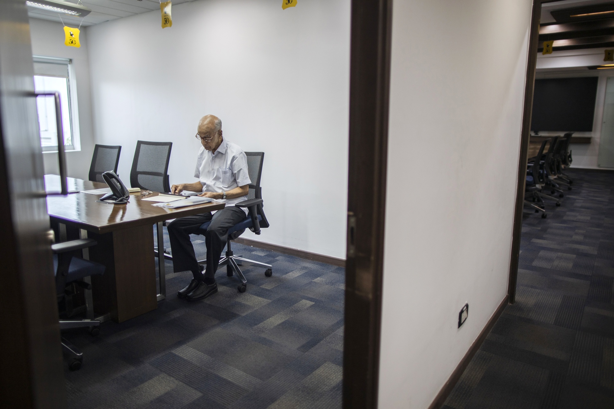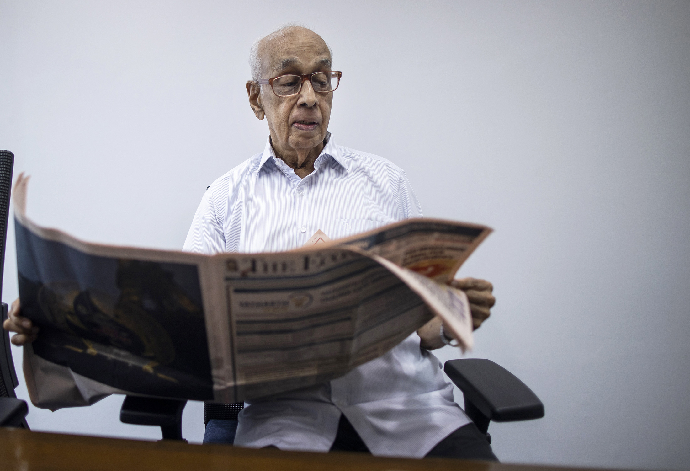 R Thyagarajan,Shriram集团创始人,在公司位于金奈的办公室。摄影师:Prashanth Vishwanathan/Bloomberg现年86岁,已经安定下来担任顾问角色的Thyagarajan在接受彭博新闻罕见采访时表示,他进入这个行业是为了证明向没有信用记录或固定收入的人放贷并不像人们认为的那样危险。他坚称他的经营方式或者决定捐赠Shriram现在价值超过7.5亿美元的股份并不算是什么特别之处。