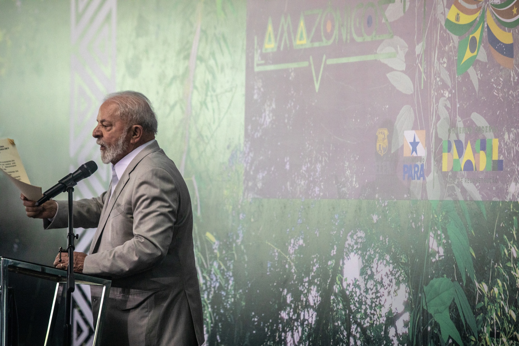 路易斯·伊纳西奥·卢拉·达席尔瓦在8月9日在贝伦的亚马逊峰会上举行新闻发布会。