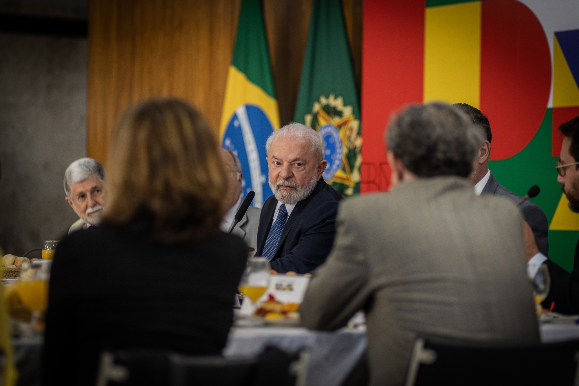 卢拉在巴西利亚与国际记者会谈期间发言。摄影师:亚瑟·门斯卡尔/彭博社### 彭博社更多内容