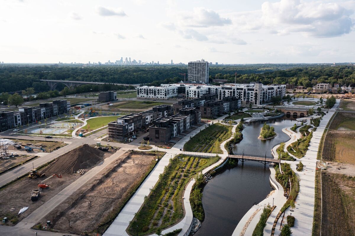 一个综合用途的开发项目,在密西西比河畔的明尼苏达州圣保罗市,双子城都会区的一部分,正在建设中,其中20%的住房供低收入租户使用,这个项目占地122英亩,曾经是一家福特汽车总装厂的所在地摄影师:Ben Brewer/Bloomberg