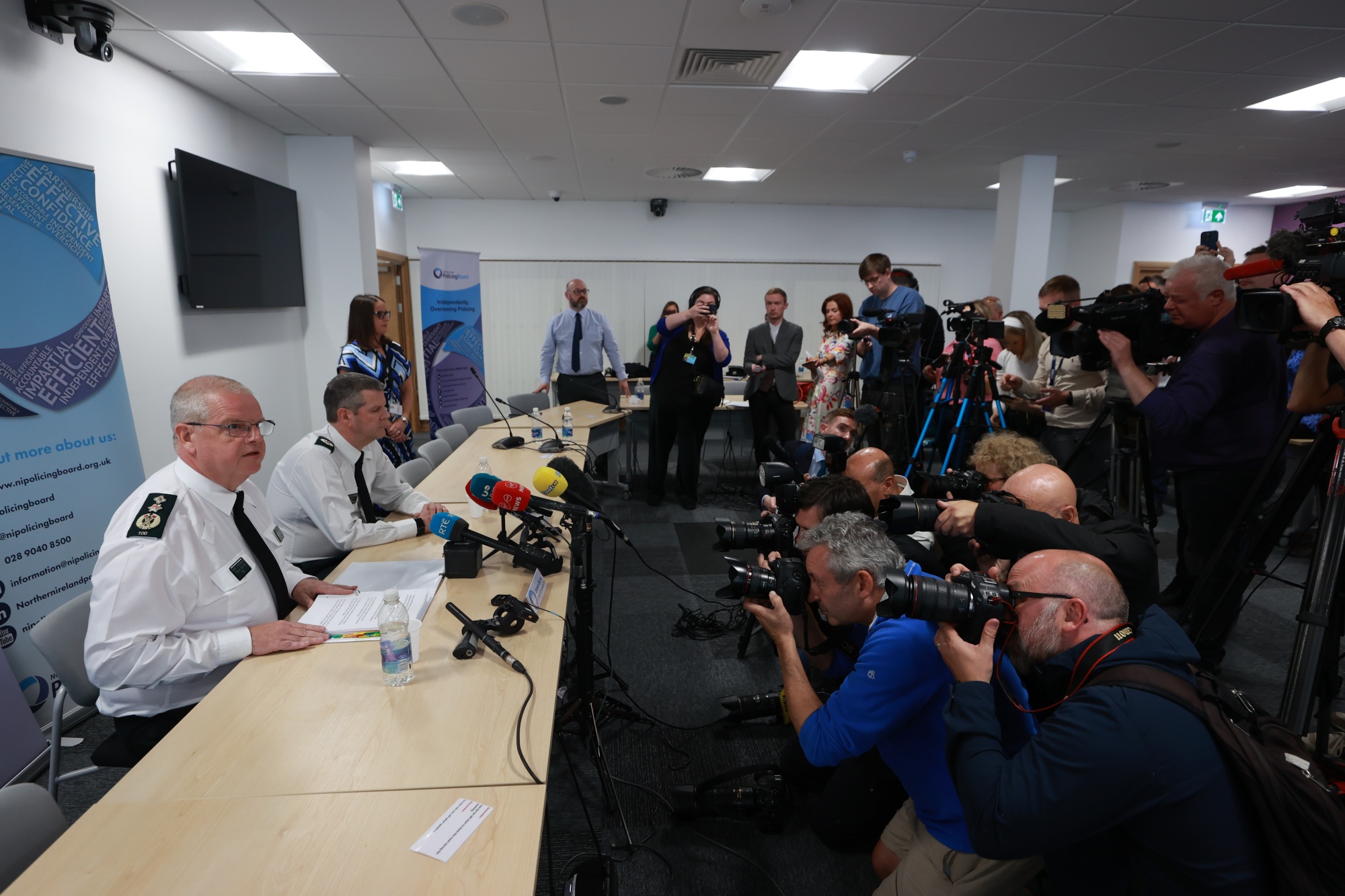 北爱尔兰警察局局长西蒙·伯恩(Simon Byrne)在8月10日的贝尔法斯特新闻发布会上。