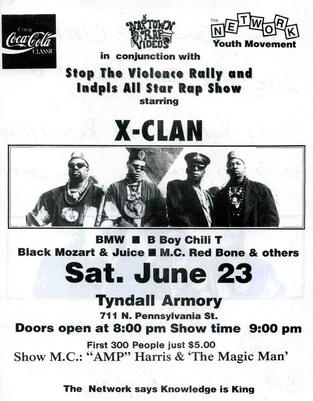 一场音乐会的传单,特邀了环球嘻哈音乐博物馆的首席策展人帕拉达斯·格雷,当时他是说唱组合X-Clan的成员。摄影师:帕拉达斯·格雷8月12日,他的节目“嘻哈珍宝”在A&E Network首播,节目中他和说唱明星/演员LL Cool J和Ice-T前往各地寻找丢失和隐藏的文物,为博物馆收藏。