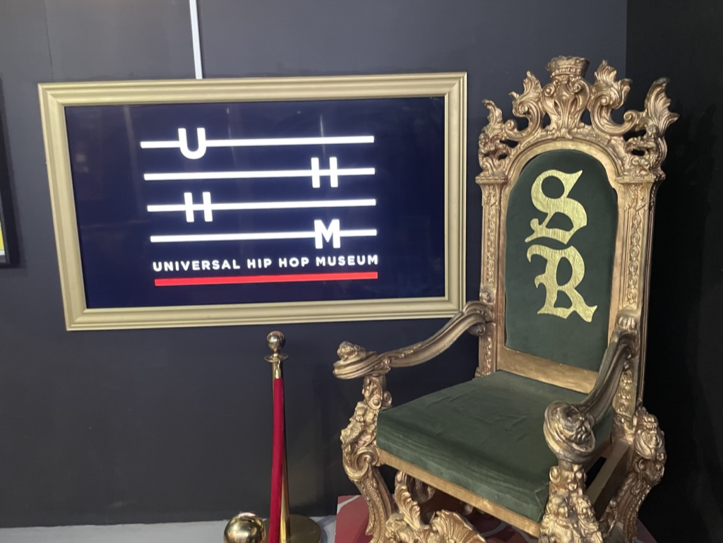 说唱歌手Slick Rick的一把椅子放在环球嘻哈博物馆当前展览“嘻哈的[R]evolution”入口处。摄影师:Brentin Mock/Bloomberg CityLab尽管仍在建设中,但它直接位于布朗克斯终端市场的Gateway Center对面,那里是一个庞大的零售和餐饮中心,距离洋基体育场仅几个街区之遥。最初计划是本月开放博物馆,恰逢嘻哈诞生50周年。然而,受到疫情和通常的建设问题的影响 — 延迟的融资、供应链短缺以及,你懂的,许可证 — 导致开放时间推迟至2024年。