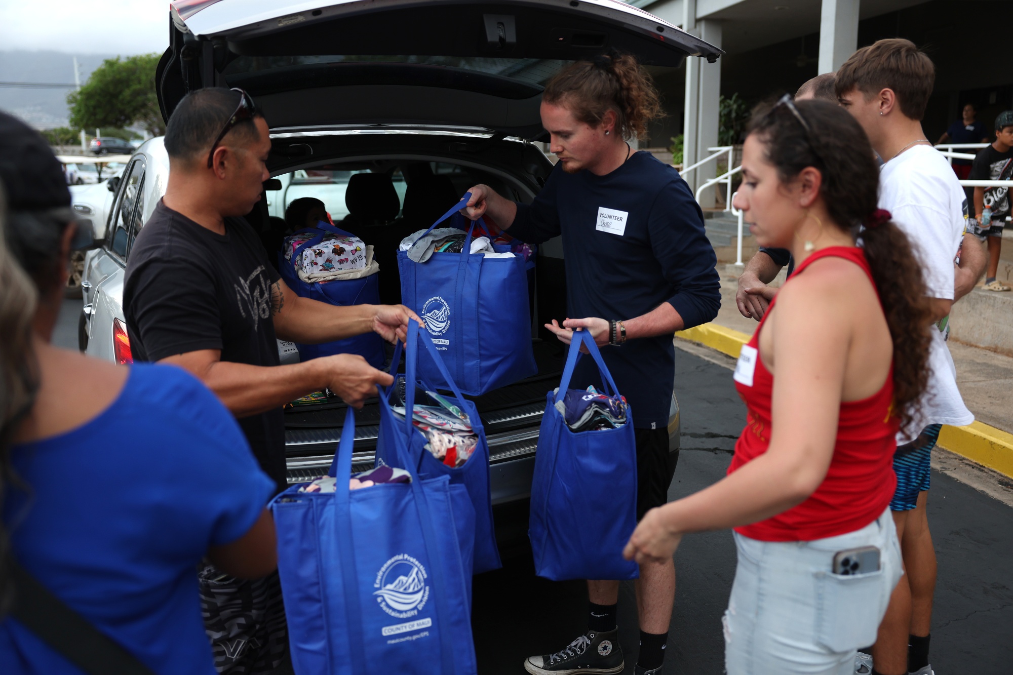 志愿者在夏威夷卡胡卢分发捐赠。摄影师:贾斯汀·沙利文/盖蒂图片社观看:拜登承诺向饱受野火摧残的夏威夷提供灾难援助