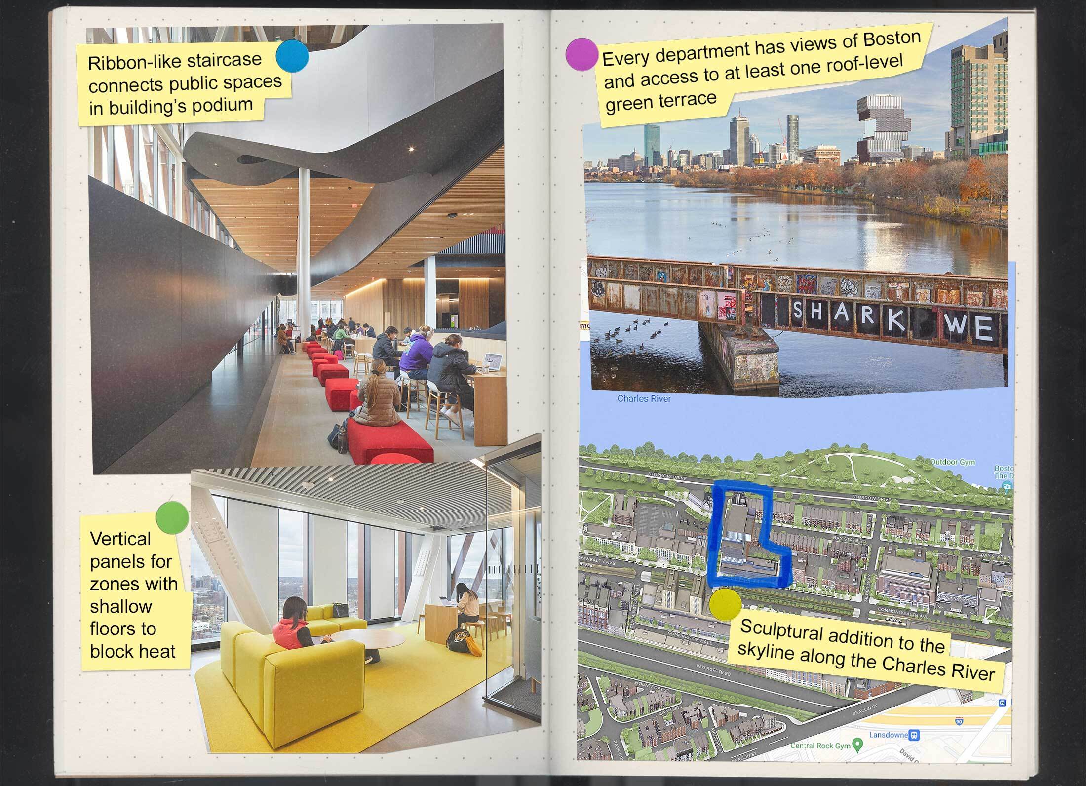 照片:汤姆·阿尔班。插图:斯蒂芬妮·戴维森“波士顿的典型塔楼是什么?四面,带有挤压玻璃幕墙的盒子,”罗查说。“我们试图重新塑造塔楼的含义,并考虑在建筑内部为不同系提供身份认同。”