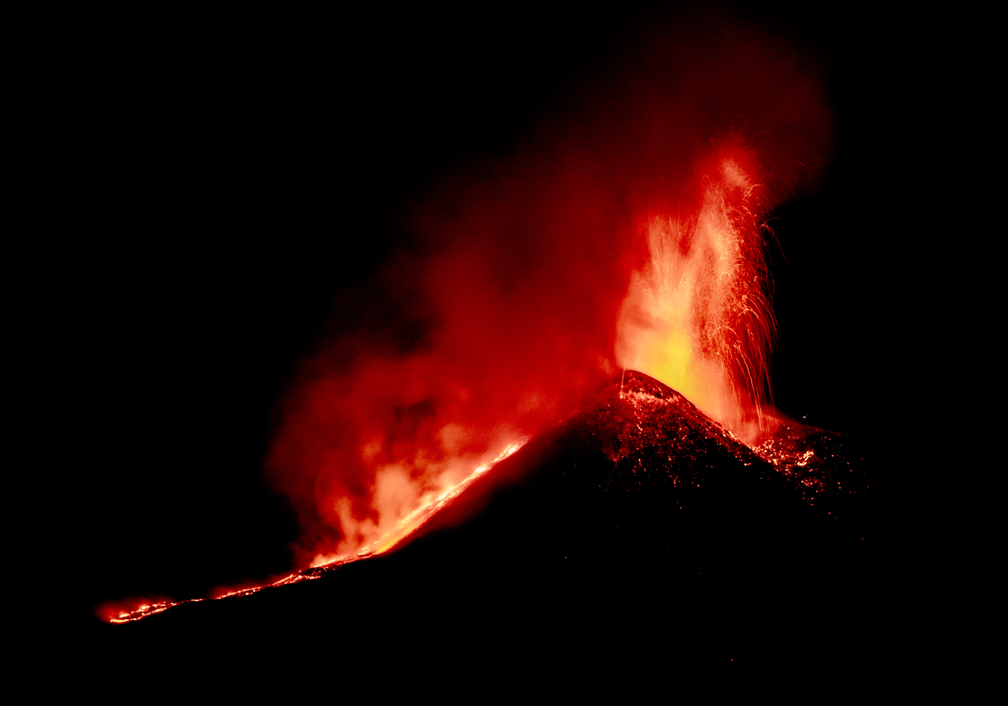 意大利卡塔尼亚的埃特纳火山于8月14日喷发。摄影师:法布里齐奥·维拉/盖蒂图片社埃特纳火山是欧洲最活跃的火山,在火山的东南火山口海拔约2700米处在夜间喷发,喷出烟雾和火山灰,意大利地球物理和火山学研究所表示。该研究所后来表示,火山的活动正在减弱。