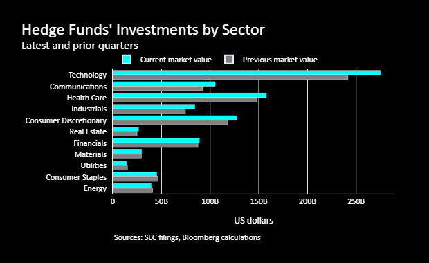 对冲基金在第二季度买入了一些最大的科技股,以抓住该行业的火热涨势和对人工智能的炒作,根据投资经理向美国证券交易委员会提交的最新季度报告。
