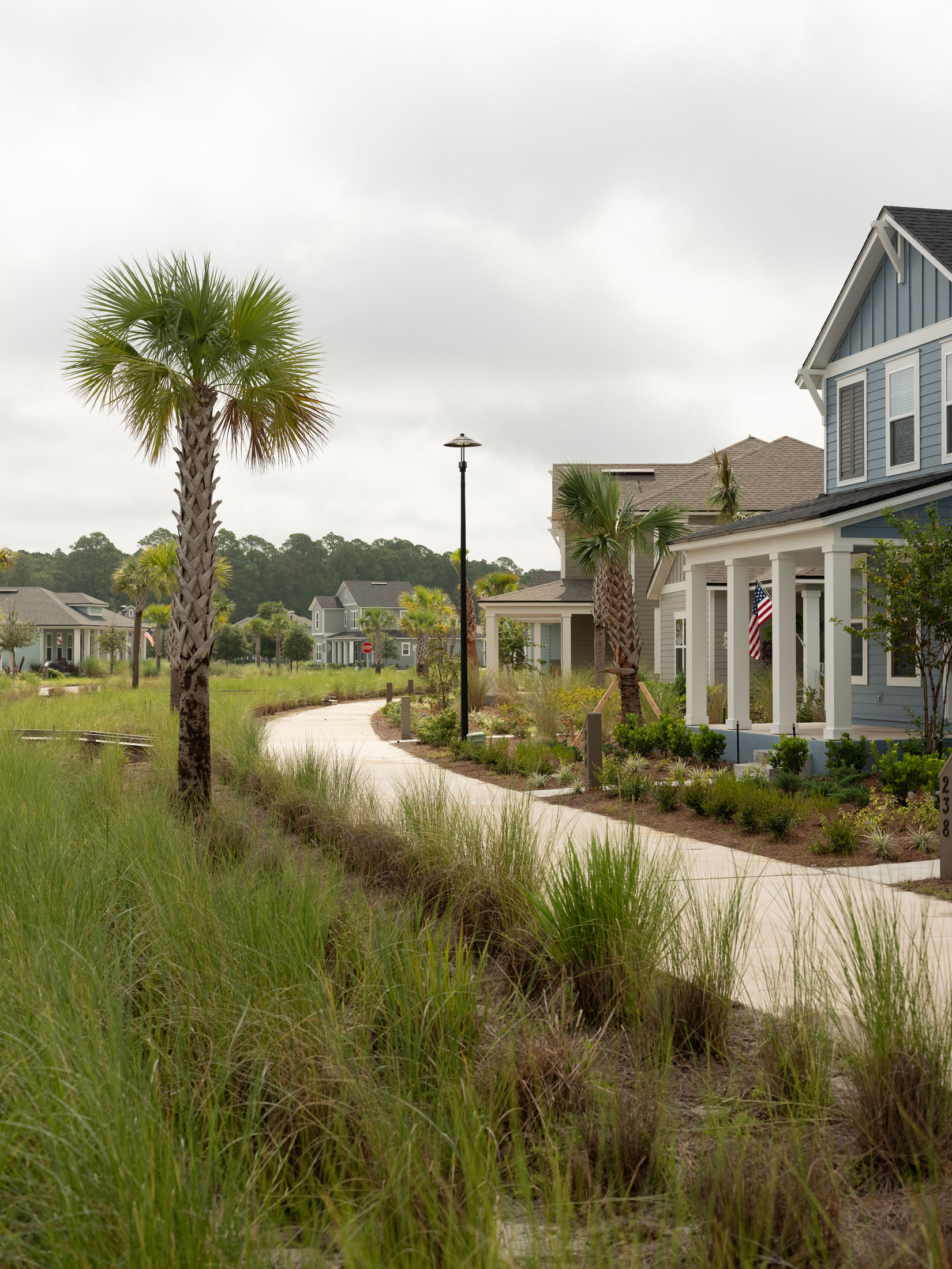 这些想法在疫情爆发前几年大多是理论性的,直到雷尼尔公司在Wildlight动工,Meegan最近从布法罗搬到了这个中央规划的小镇。雷尼尔公司是一家拥有拿骚县南部大片黄松林的木材公司,一直在逐一向开发商出售地块,创造了沿A1A典型的郊区扩张。作为东95号州际公路以东的一块优质地产,Wildlight的计划非常不同,精心布置在24000英亩的土地上,这个面积是拿骚县海滩目的地阿梅利亚岛的两倍。