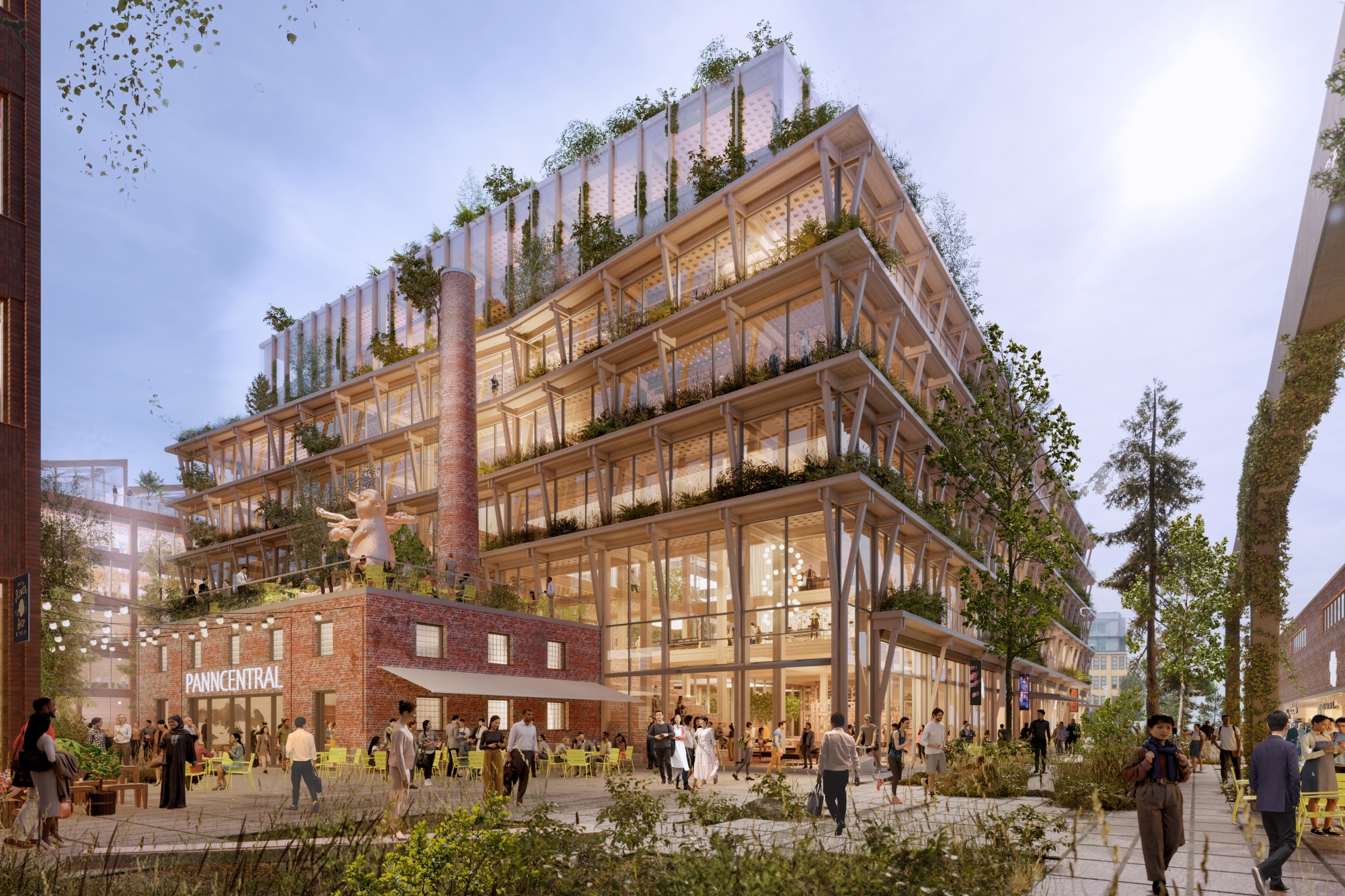 大型木结构区将成为世界上最大的木质开发项目,Atrium Ljungberg表示。摄影师:Atrium Ljungberg / Henning Larsen交通便利将是一个吸引点,他补充说。“越来越少的人愿意在车上长时间通勤。但在通勤时间较短、尤其是有良好公共交通的地方,可持续办公楼有潜力。”