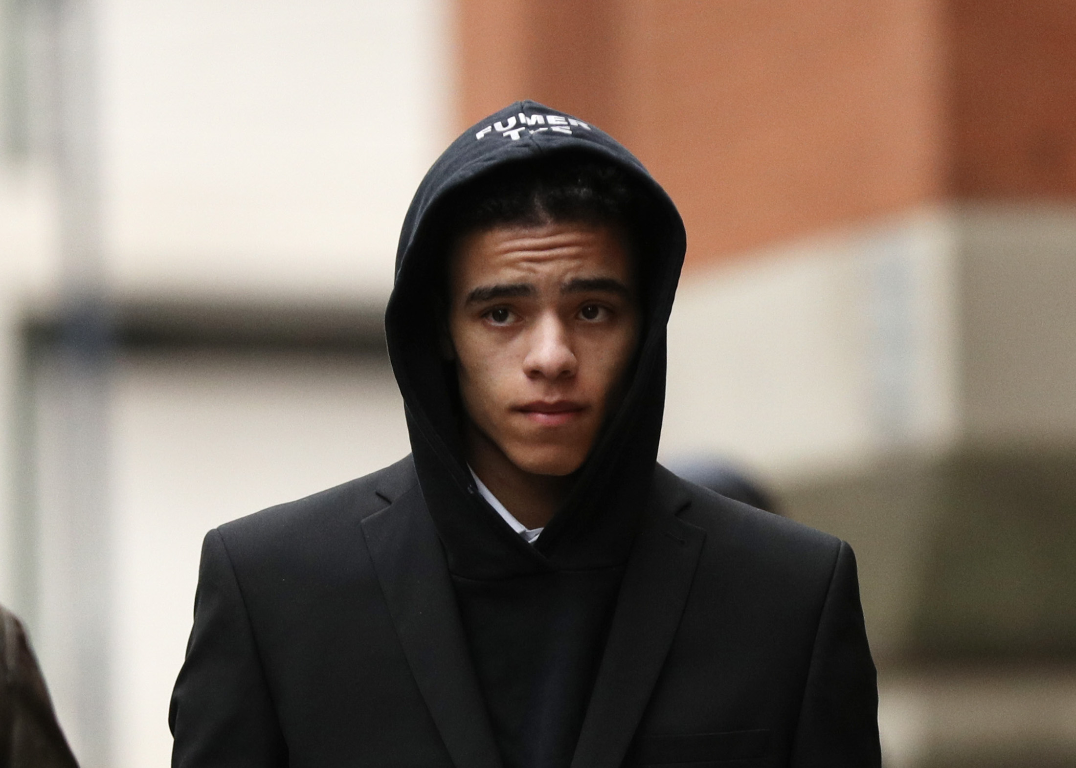 梅森·格林伍德在2022年离开曼彻斯特的明舒尔街皇家法院。
