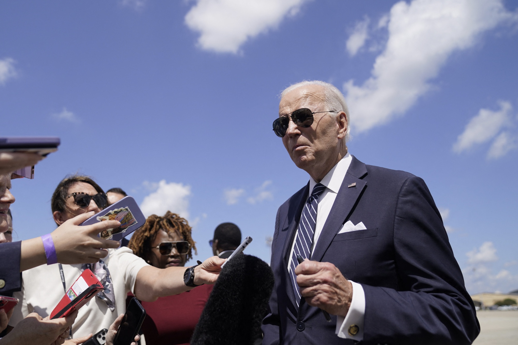 乔·拜登总统今天在登上空军一号之前向记者发表讲话。