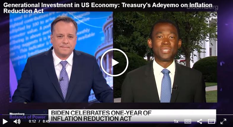 今天在彭博电视台的 权力平衡 节目中,主持人安玛丽·霍登和凯莉·莱因兹将采访共和党总统候选人威尔·赫德和道格·伯格姆,谈论他们竞选共和党提名的活动。在昨天的节目中,财政部副部长沃利·阿德耶莫讨论了通胀减少法案的第一年。