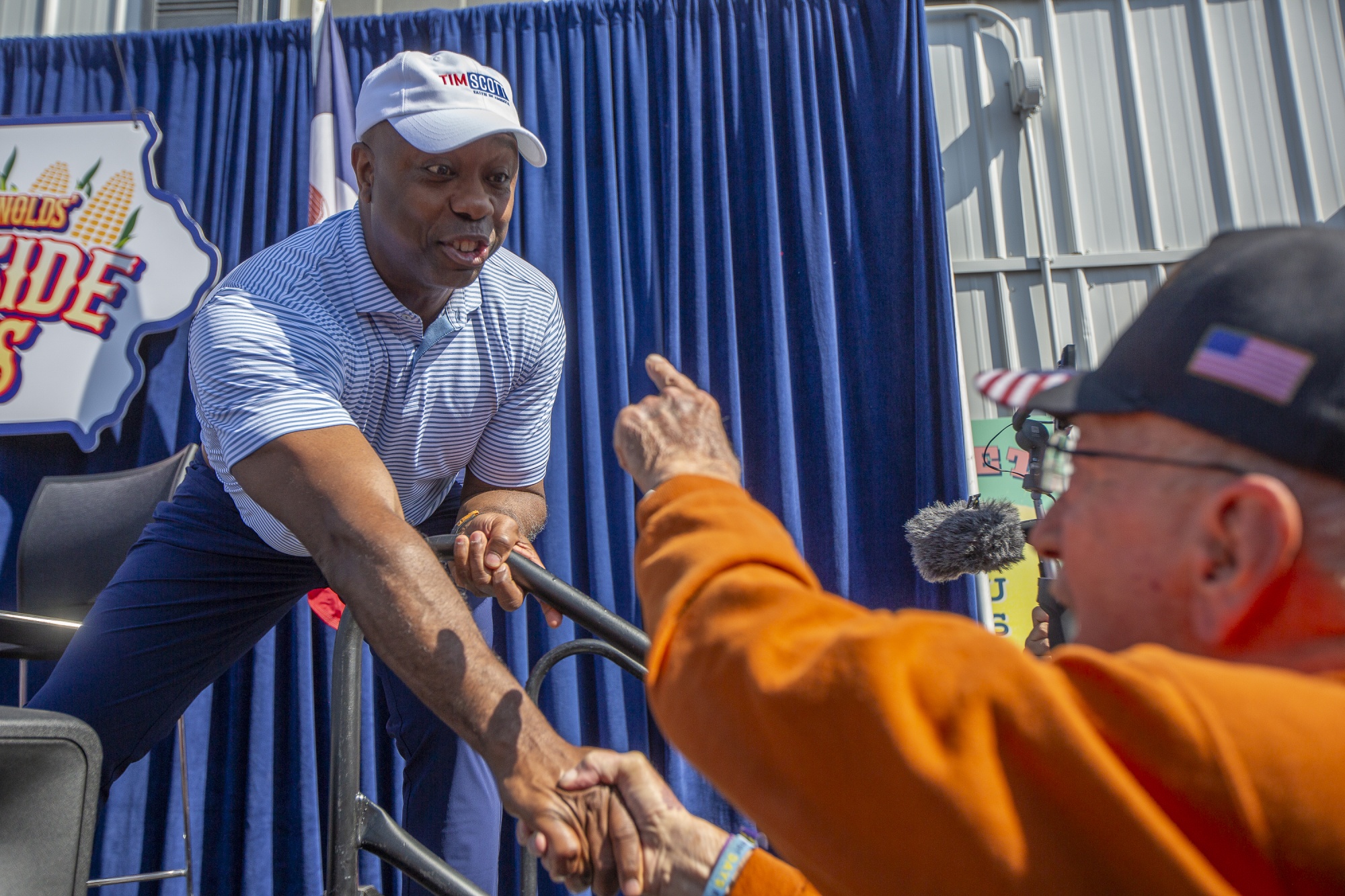 蒂姆·斯科特于8月15日在爱荷华州得梅因市的爱荷华州博览会上。摄影师:瑞秋·穆米(Rachel Mummey)/彭博社来自南卡罗来纳州的联邦参议员斯科特在第三季度以强劲的财政优势进入,手头现金2100万美元,排名第二,超过了民主党现任总统乔·拜登。
