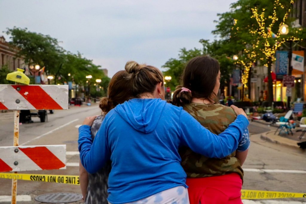 警告带挡住了伊利诺伊州高地公园的中央大道,这是2022年7月5日,也就是七人在独立日游行中遇害,数十人受伤后的第二天。
