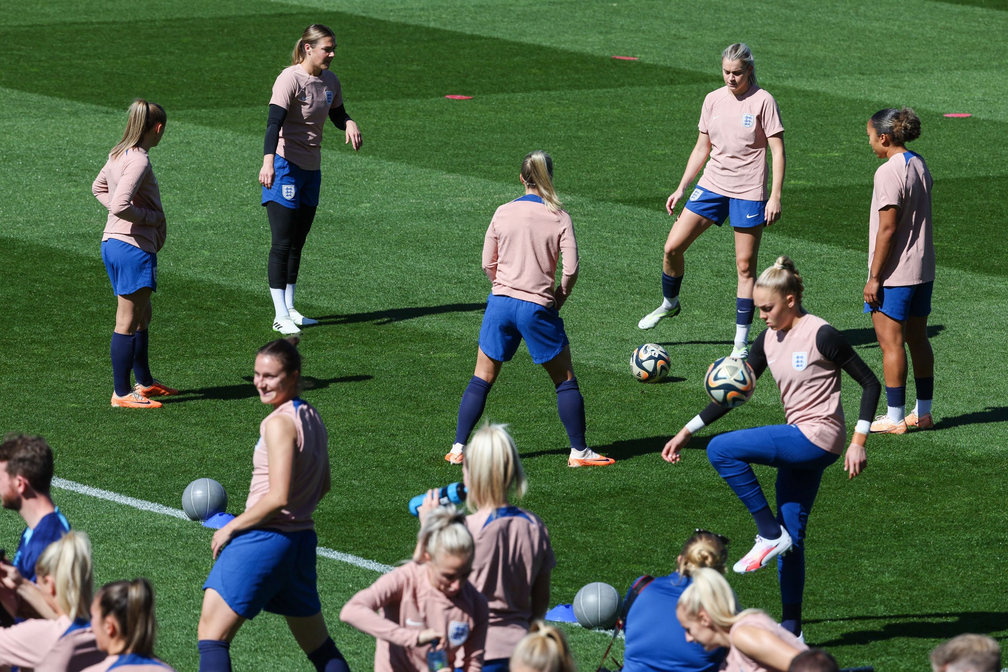 英格兰球员在FIFA女足世界杯决赛前训练。