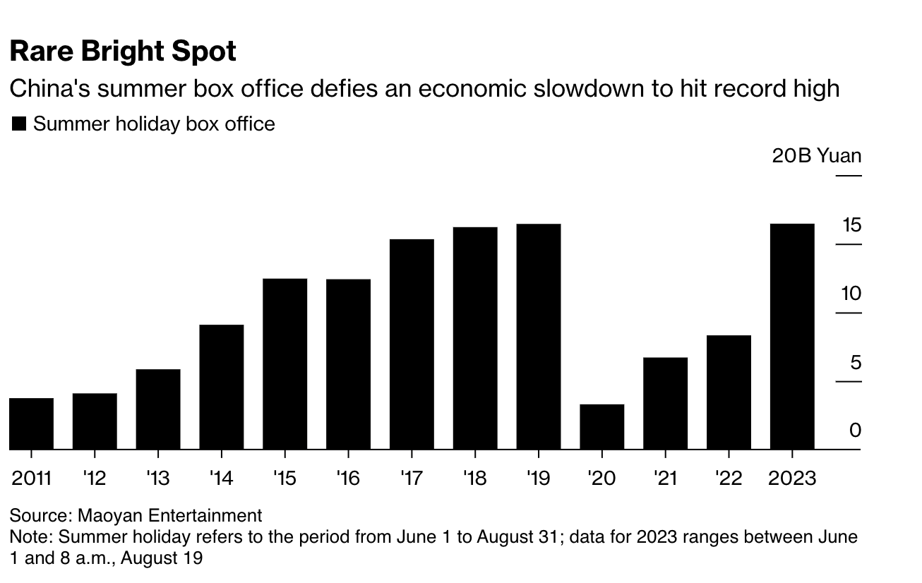 中国电影院度过了有史以来最好的夏天。自6月初以来的票房已超过23亿美元,创下历史最高纪录。