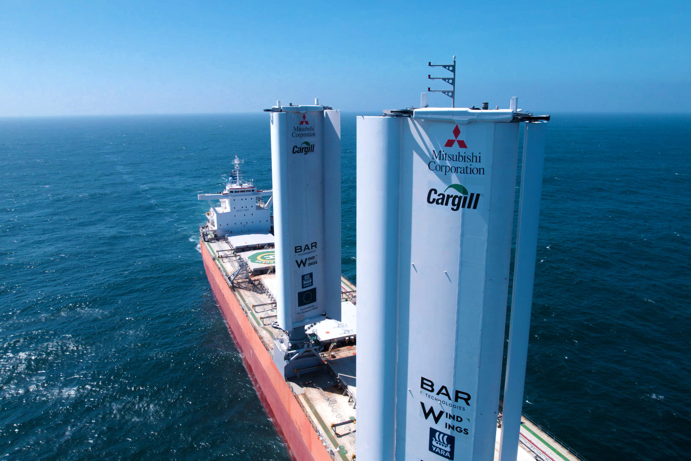 由大宗商品巨头嘉吉公司租赁的重达8万吨的散货船Pyxis Ocean,在安装了两个巨大的钢制和复合玻璃“帆”后,刚刚完成了从上海到新加坡的首航。这是第一艘安装两个高37.5米(123英尺)的WindWings的船只。设计者BAR Technologies表示,这些“帆”可以将船只的燃料使用量减少约五分之一。如果试验顺利,嘉吉希望在多达10艘船只上添加帆。