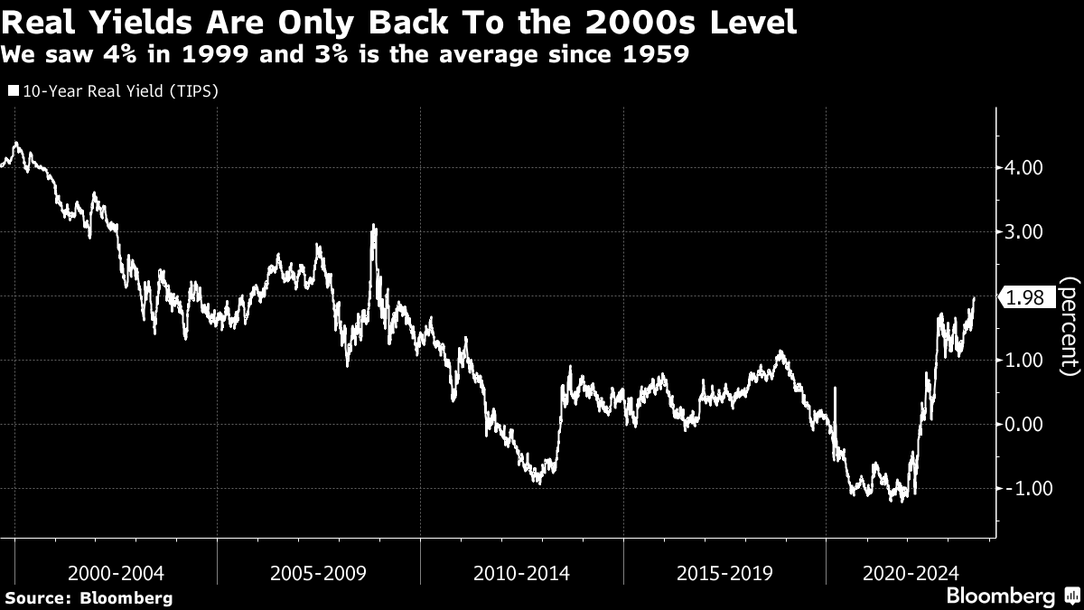 我们需要等多久呢?嗯,互联网泡沫在2000年破裂,当时实际利率为4%。那是今天水平的两倍。