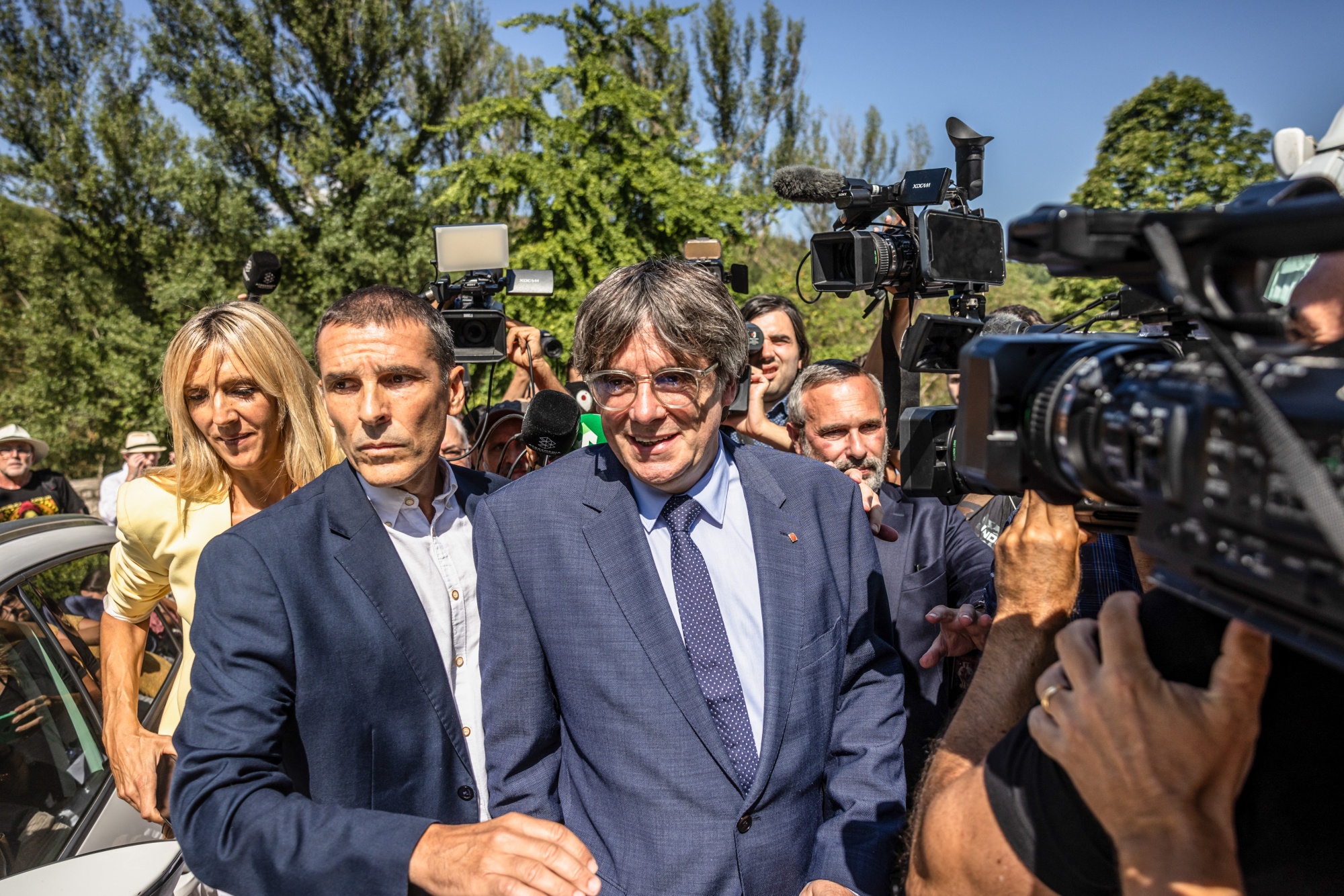 卡尔斯·普伊格德蒙特,加泰罗尼亚联合党领袖,于8月21日抵达法国科达莱特参加活动。