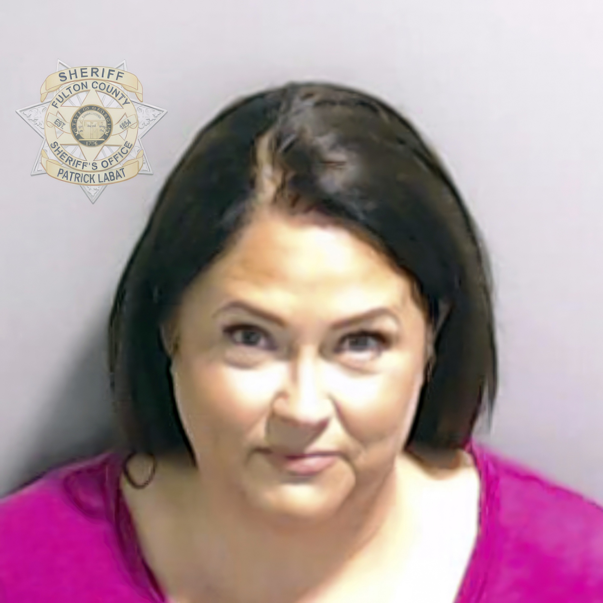 卡西·拉瑟姆的预订照片,于8月23日拍摄。来源:富尔顿县警长办公室### 凯瑟琳·拉瑟姆