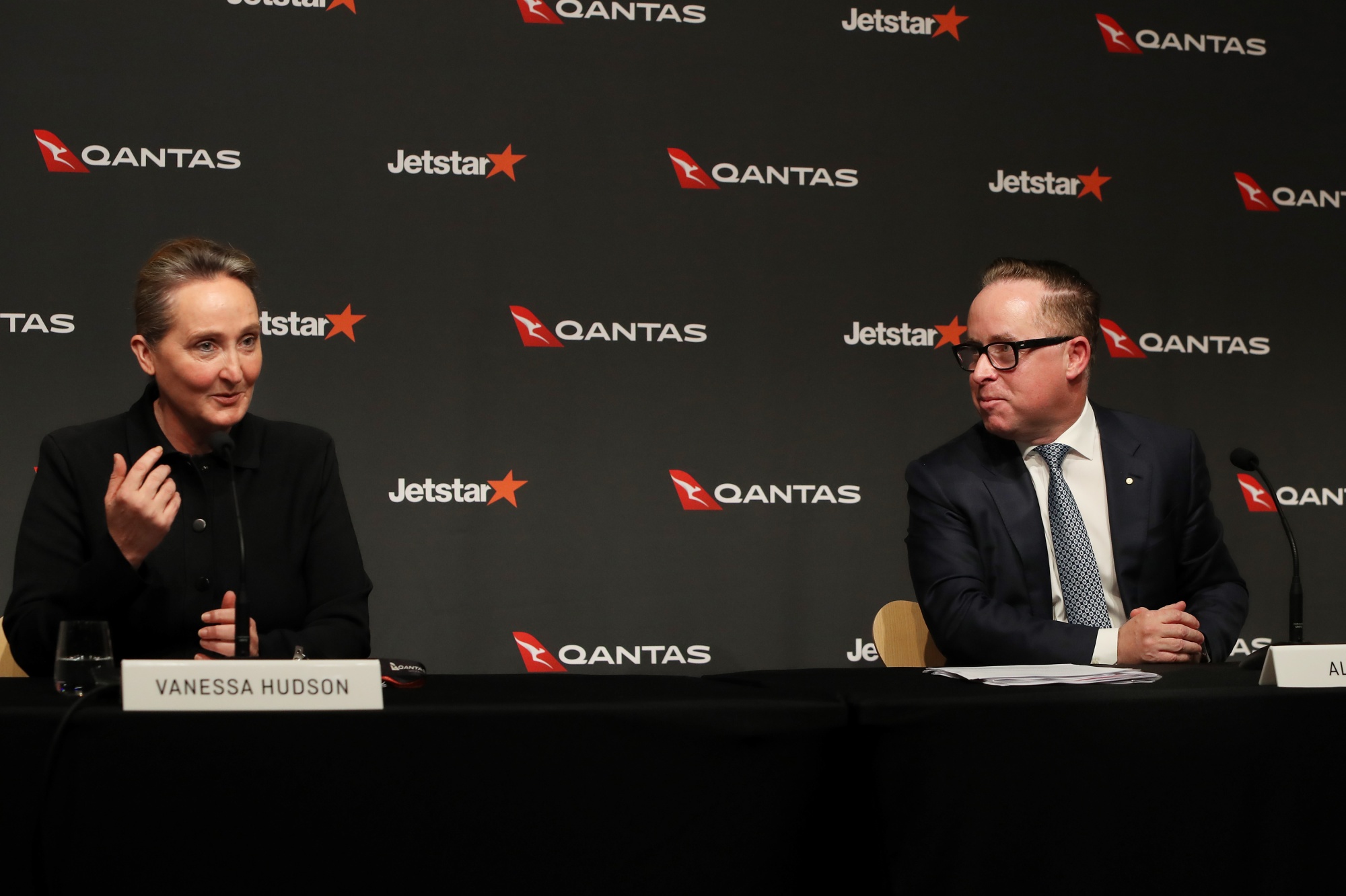 澳洲航空公司即将离任的首席执行官艾伦·乔伊斯(Alan Joyce),与即将上任的首席执行官范妮莎·哈德森(Vanessa Hudson)