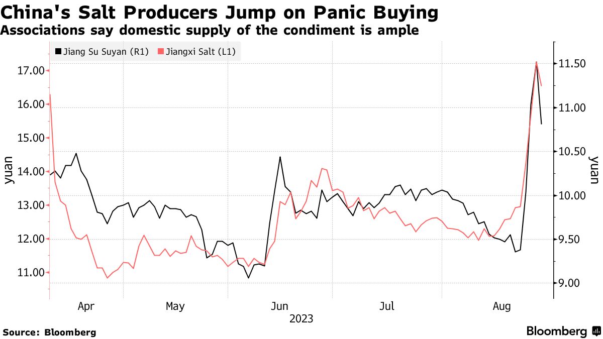 一些消费者涌向超市和电子商务平台囤积物资,部分原因是担心福岛泄漏会污染海洋,影响盐的来源。包括江苏苏盐精神公司在内的中国生产商纷纷抓住了普遍的恐慌性购买。