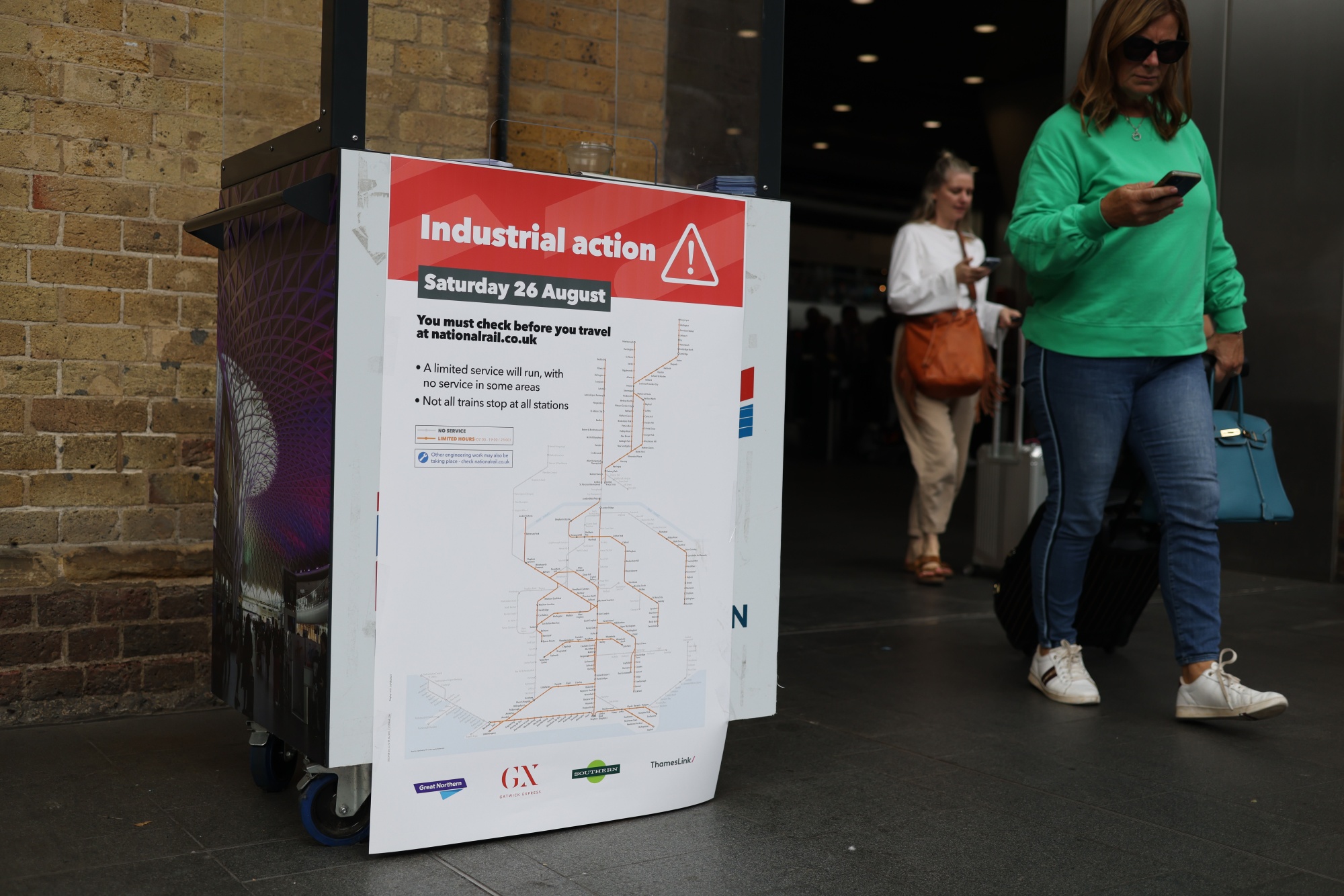 一则通知显示,由于伦敦国王十字车站的工业行动,服务将受到影响。