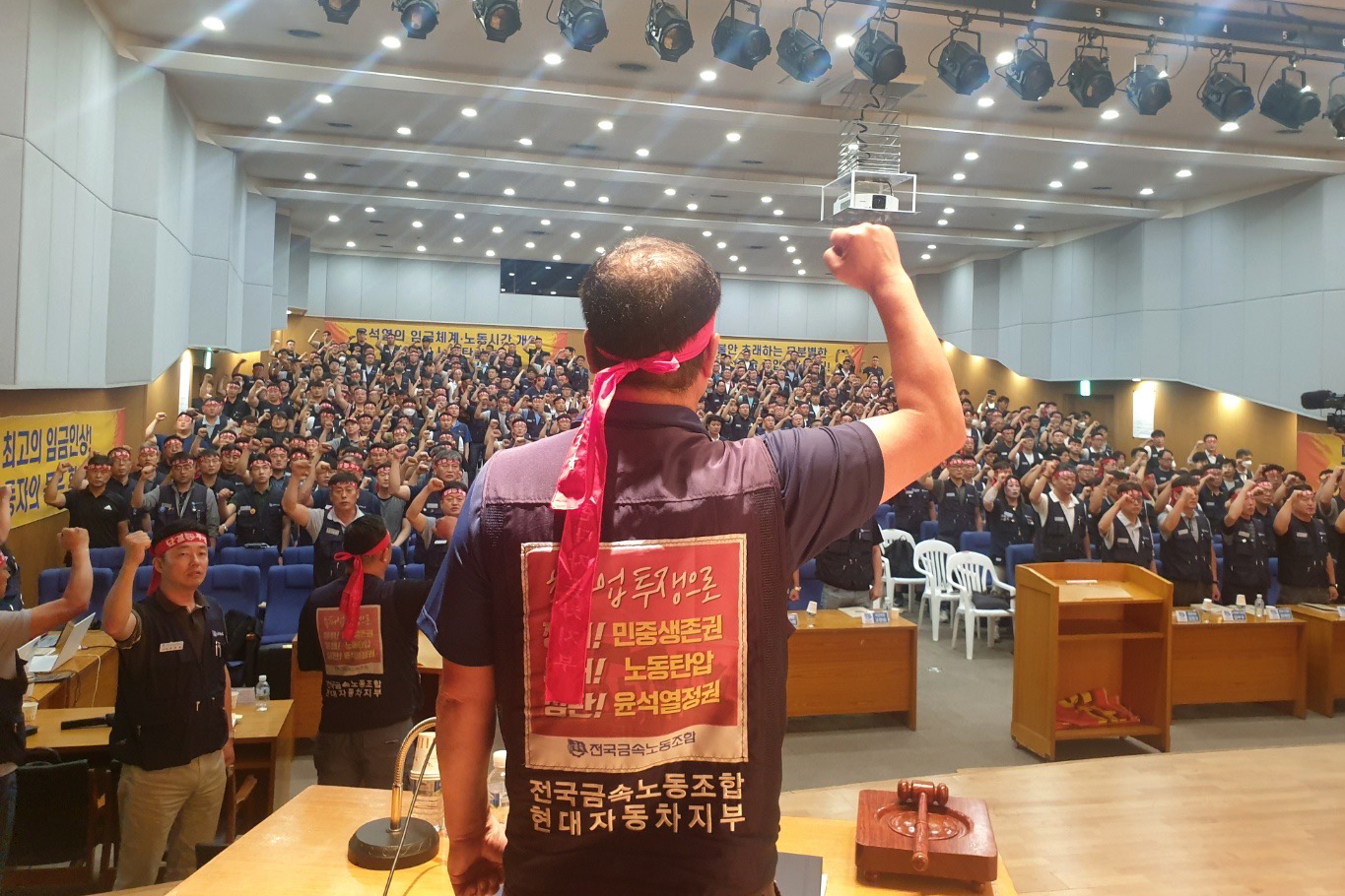 韩国金属工人工会现代汽车分会成员于8月23日举行集会。来源:韩国金属工人工会现代汽车分会现代汽车公司的工会工人投票决定首次罢工,旨在提高工资并提高强制退休年龄,因为通货膨胀冲击了韩国经济。