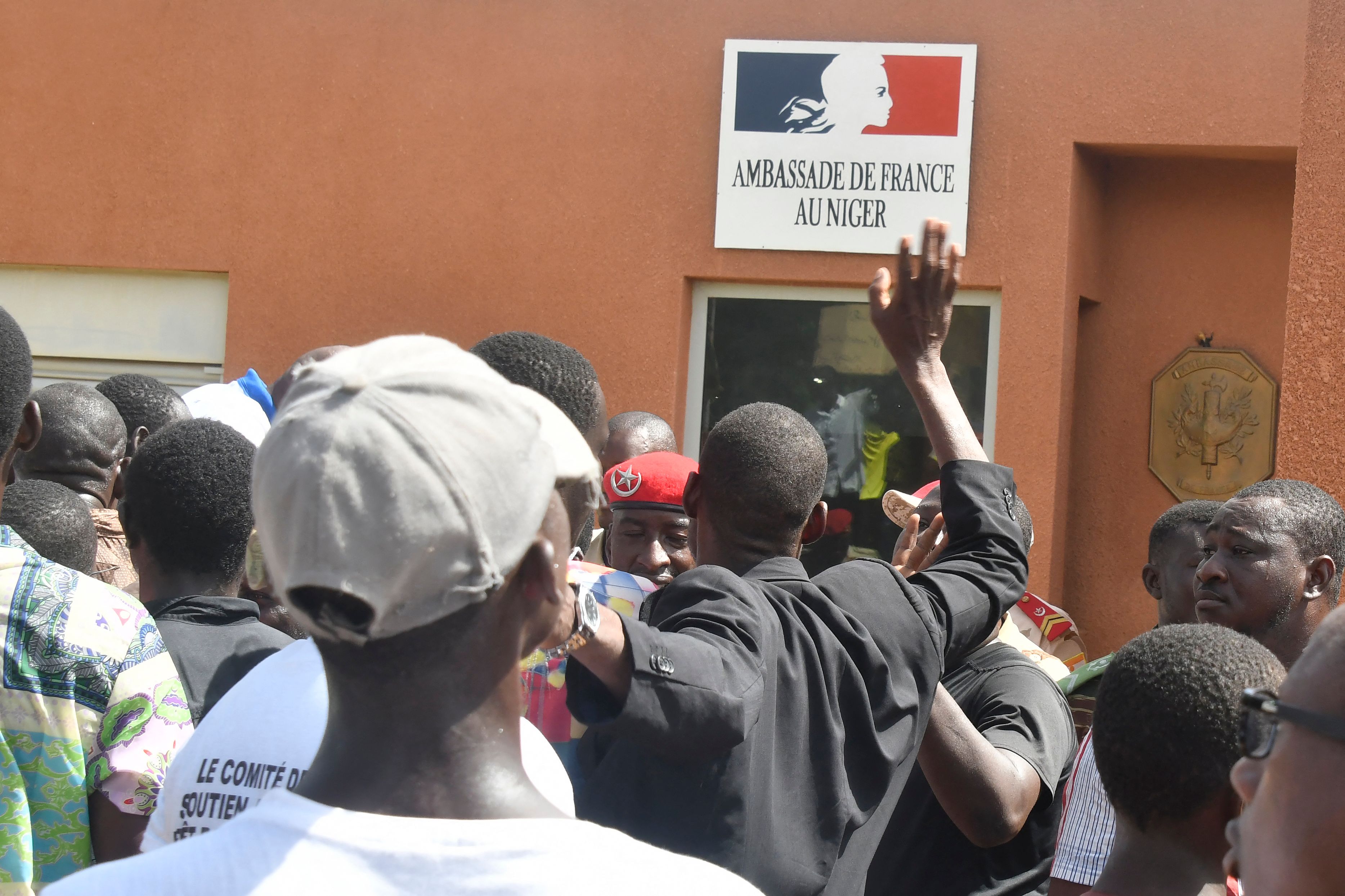 抗议者聚集在尼日尔尼亚美的法国大使馆前。