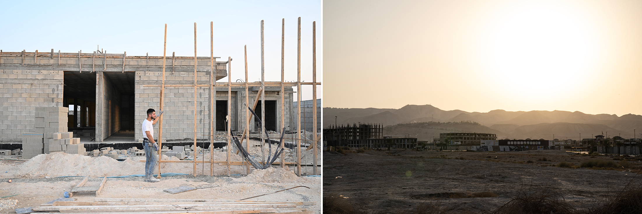 为了避免沙漠中夏天最热的时候,大多数建筑只会在太阳不再正上方时进行。摄影师:Tanya Habjouqa for Bloomberg Businessweek接管Padico几年后,胡利莱赫开始通过它创建耶利哥之门。这个地点具有明显的魅力。犹太教堂、基督教堂和清真寺长期共存于耶利哥。在土壤下面埋藏着从公元前10000年开始的20多个文明的遗迹,从迦南人到哈斯蒙尼人再到拜占庭人;从奥斯曼人到英国人、约旦人再到现在的巴勒斯坦人。这座城市的名字源自希伯来语中的“月亮”一词,以及古迦南语中的“芬芳”和“月亮”一词。它是早期的月神崇拜中心。几乎低于海平面1000英尺,是地球上最低的城市。