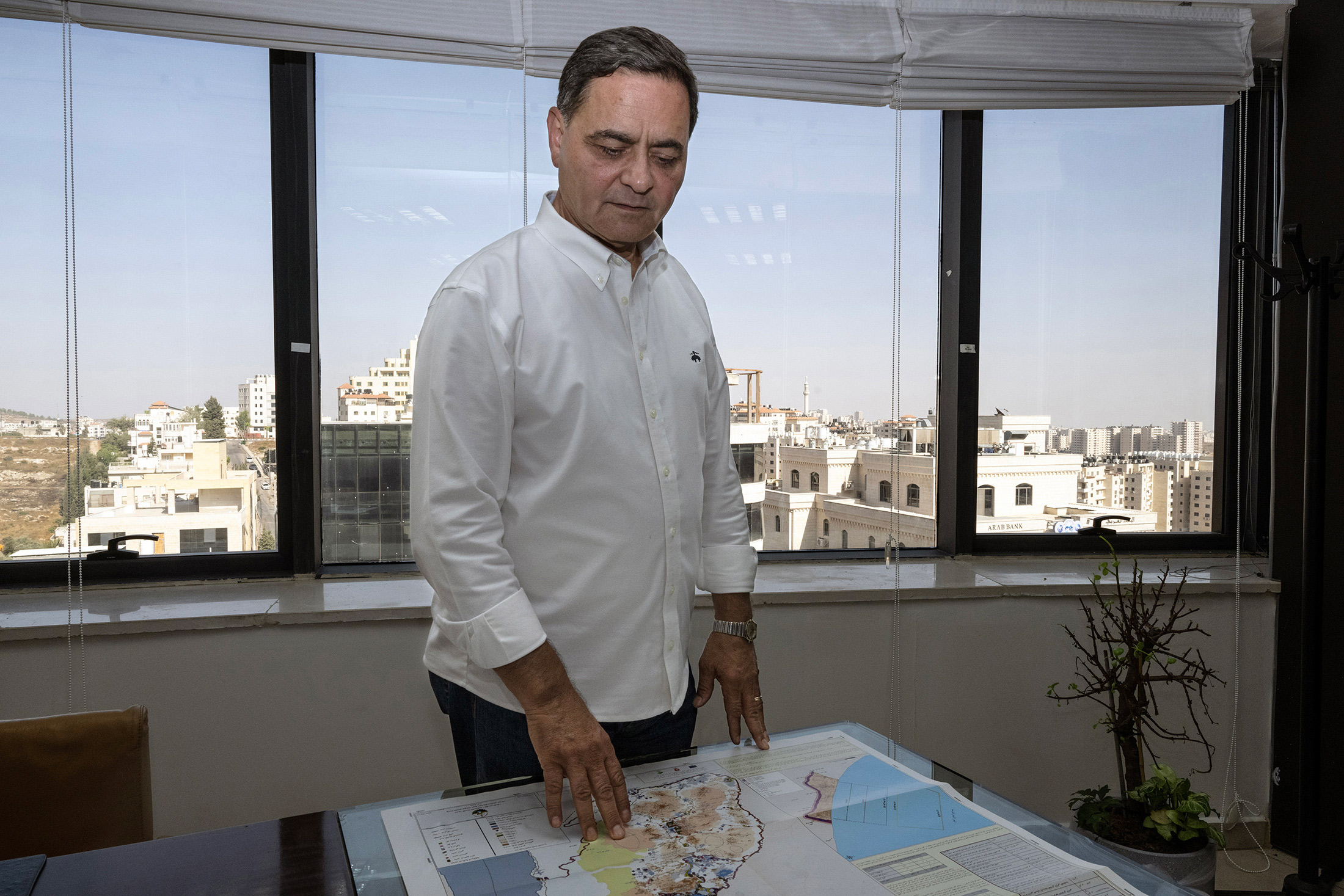 胡利莱在巴勒斯坦领土拉姆安拉的办公室里审查地图。摄影师:Tanya Habjouqa,为彭博商业周刊拍摄在最近的采访中,65岁的胡利莱身着合身的衣服,头发浓密,回顾了他的一生如何跟随他的国家经历了痛苦的历程。他在国外开始,作为难民,生活在约旦和以色列的占领下,当和平协议似乎是真实的时候,他接受了政治,然后放弃了政治转向了商业。