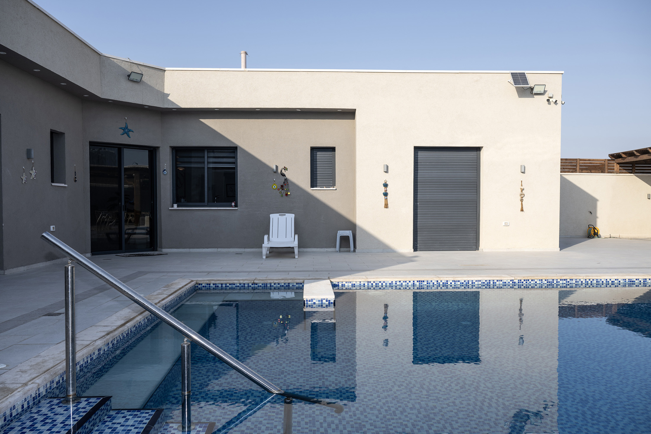杰里科门口的房产配有室外游泳池。该地区在冬季温和,但夏季可能会非常炎热。摄影师:Tanya Habjouqa,彭博商业周刊豪华轻松的感觉就在别墅墙外消失了。杰里科门口位于杰里科本身之外,靠近一个巴勒斯坦难民营、几个犹太定居点和一个以色列军事基地——这是该地区最高权威的前哨。这座古城靠近死海,大部分时间都幸免于以色列-巴勒斯坦冲突的最严重暴力。但这里的和平可能是脆弱的。今年初,在一家经常有犹太以色列人光顾的当地餐厅发生枪击事件后,以色列军队进入了难民营,击毙了五名巴勒斯坦武装分子。在七月的一起枪击事件之后,以色列士兵封锁了通往杰里科的出入口,追捕枪手。