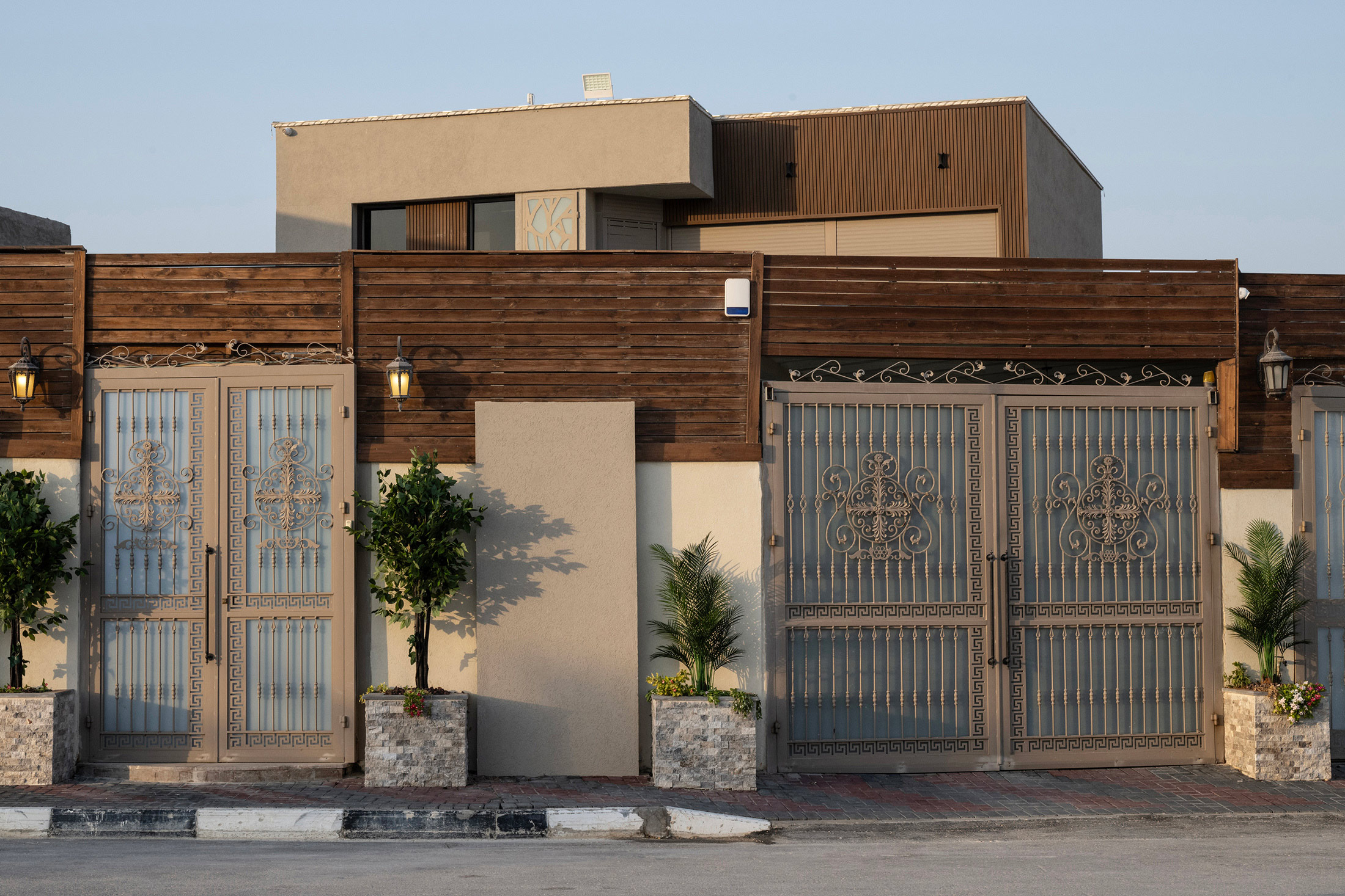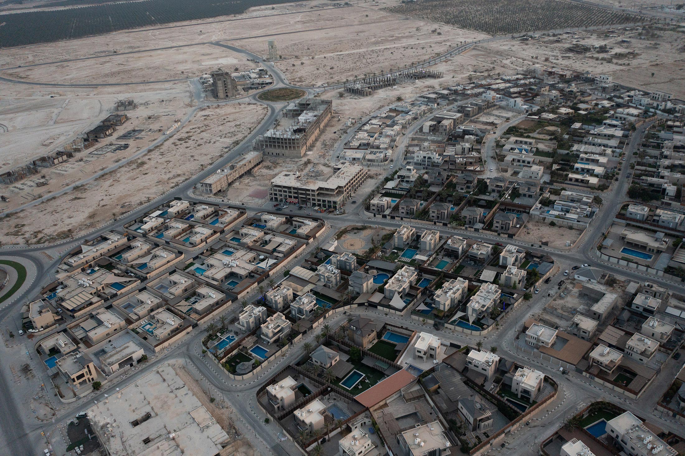 耶利哥门是巴勒斯坦领土上第一个度假屋开发项目。摄影师:Tanya Habjouqa,彭博商业周刊在一名助手端上当地的梅吉奥尔枣和薄荷茶时,Sidr解释了他的工作如何改变。“随着所有新的游泳池,我们需要新的区划法和新的用水税率,”他说。“耶利哥正在蓬勃发展。尽管有检查站和偶尔的战争,人们在这里可以赚钱。”