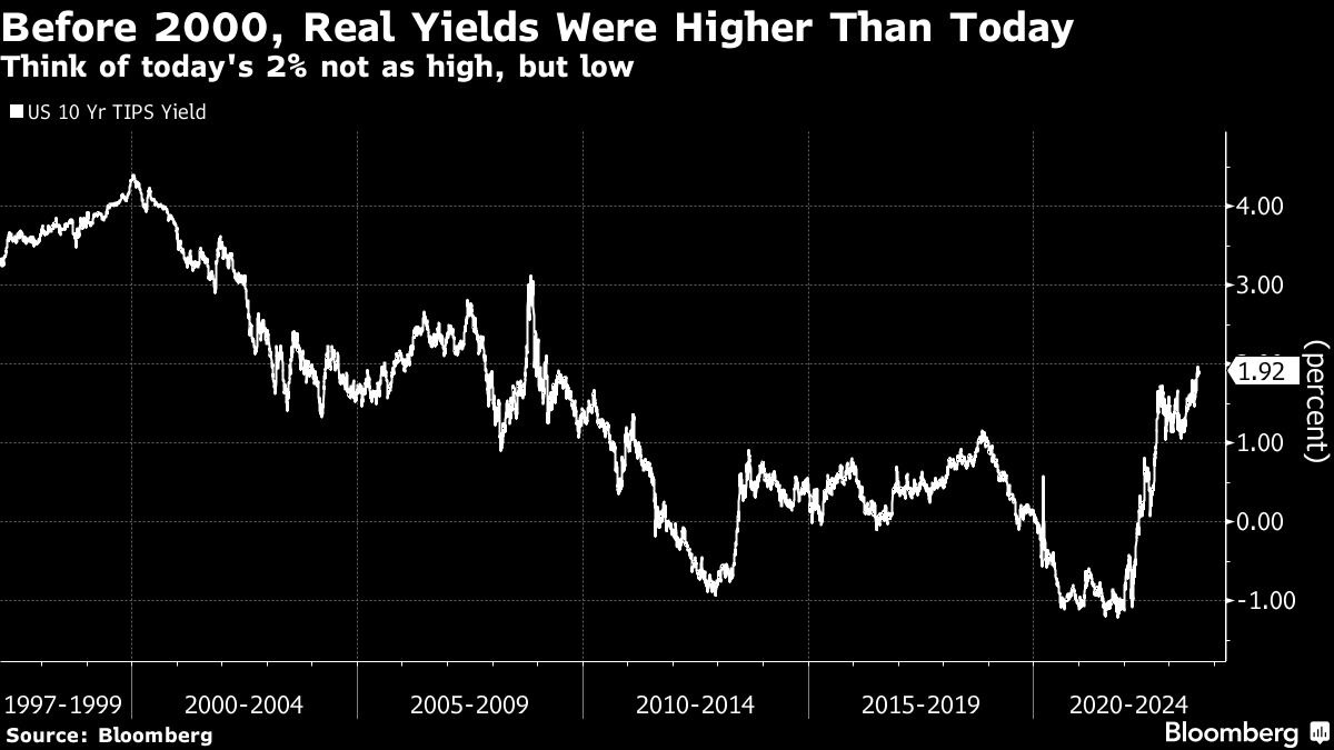 美国经济和美国资产的新常态将受到我们是否回到2000年之前的实际利率水平的重大影响。