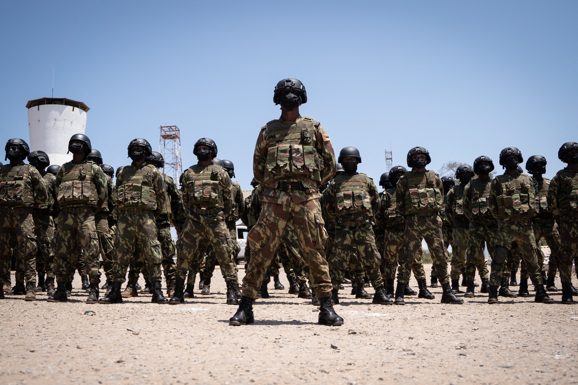 莫桑比克士兵在2018年3月巡逻莫西姆博阿达普拉亚的街道。