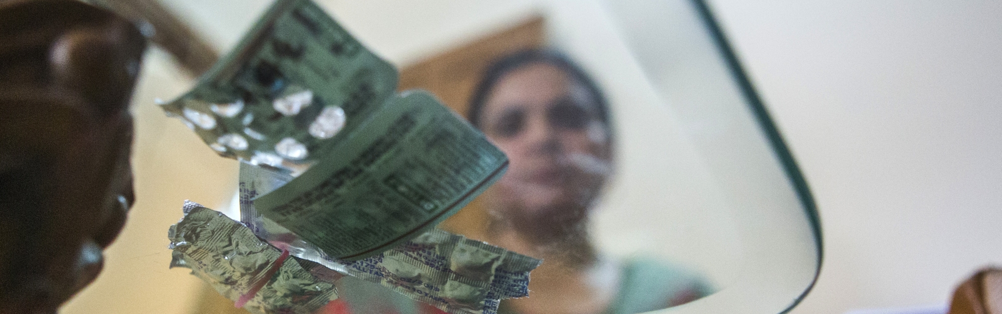 一位患者的处方药摆放在印度哈里亚纳邦一个农村的桌子上。