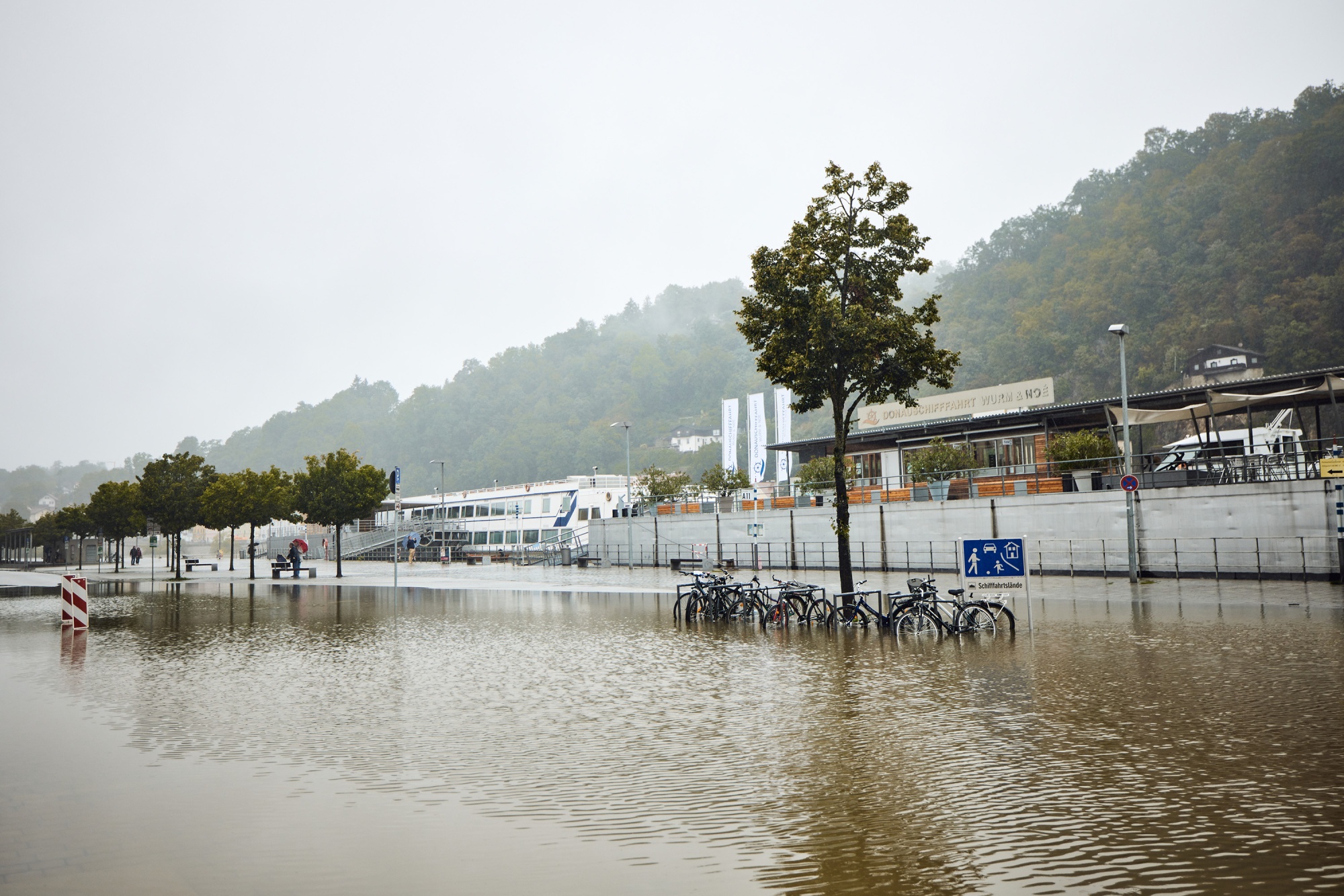 德国巴绍(Passau)的一条被淹没的街道,拍摄于8月29日。