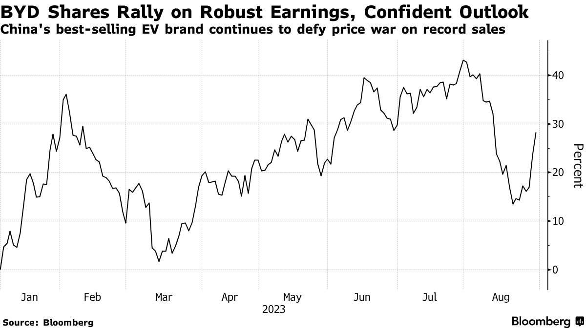 特斯拉公司在年初发起的价格战挤压了其他电动汽车制造商。本月,小鹏汽车和蔚来公司报告称第二季度亏损超出预期。然而,比亚迪一直抵制加入价格战,而是依靠其广泛的车型和价格策略来吸引购买者。