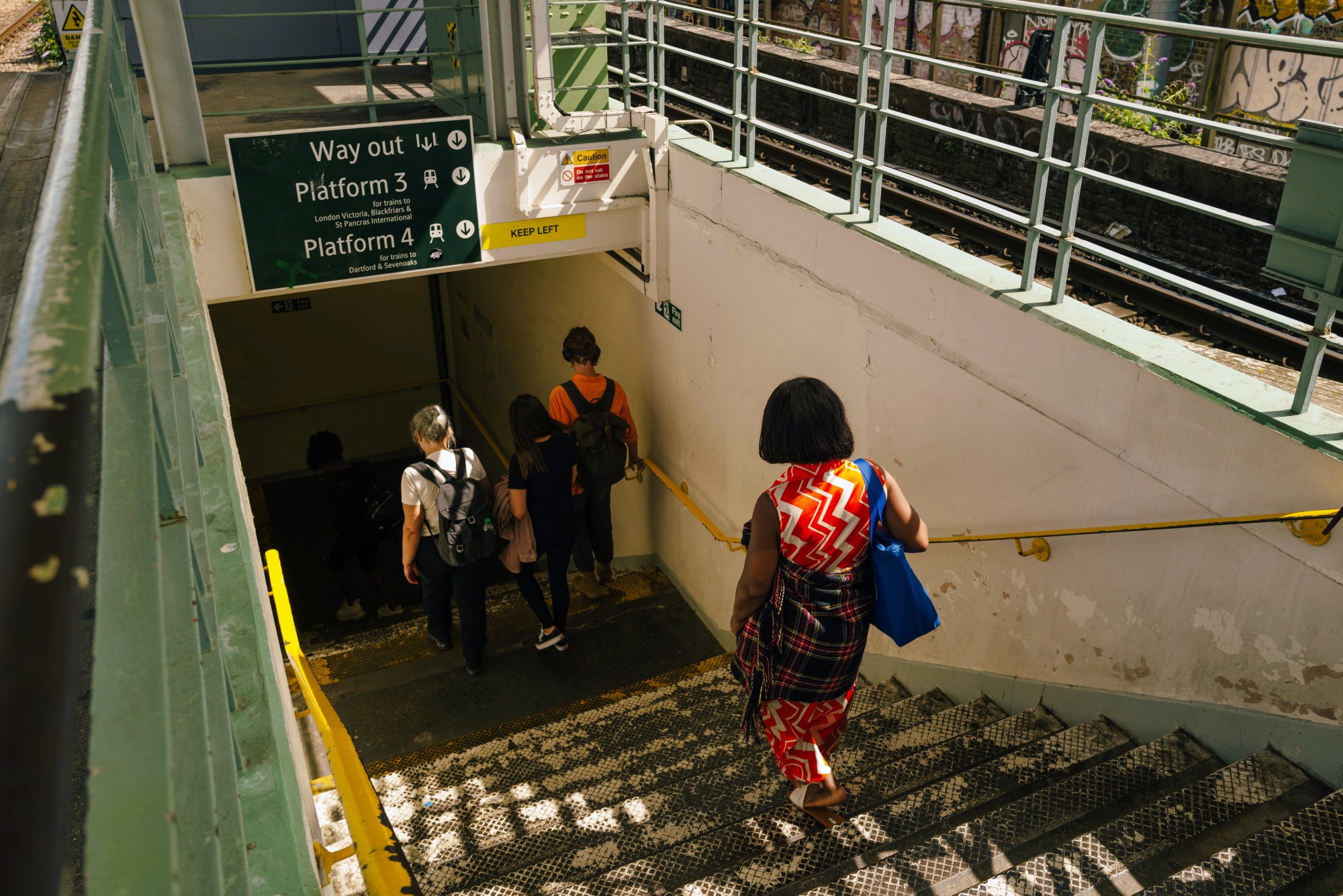 伦敦Peckham Rye火车站的通勤者。