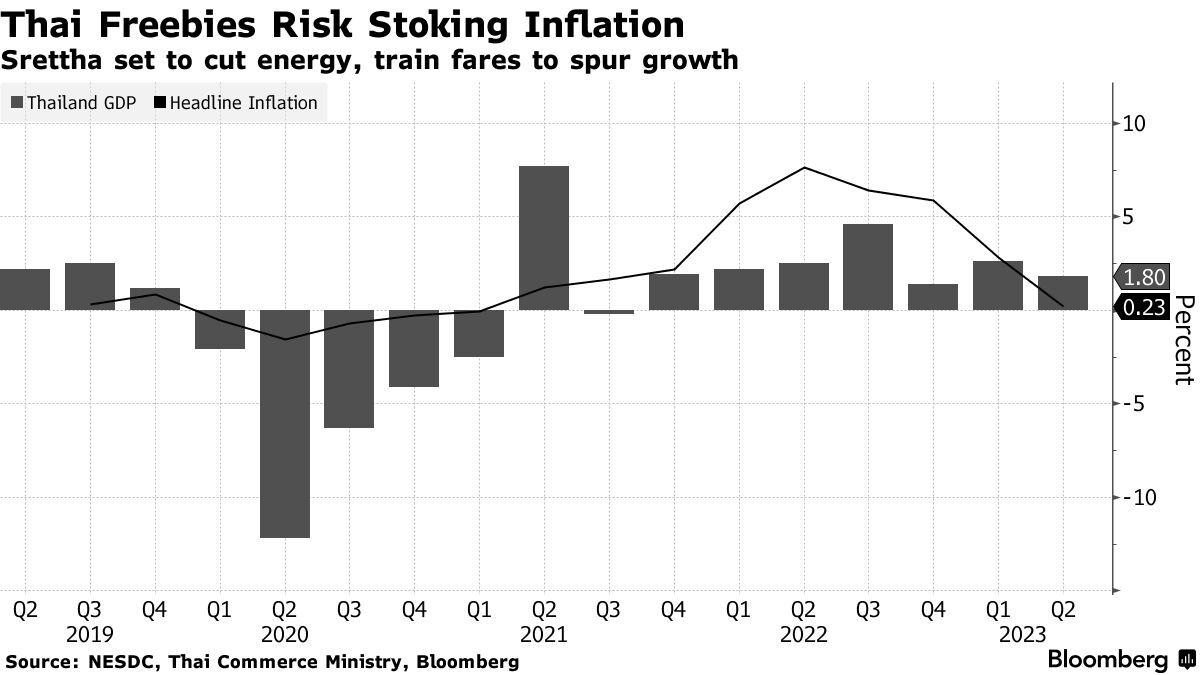 泰国新政府计划降低能源价格和城市列车票价,并暂时暂停农民的债务偿还,作为一系列措施的一部分,以缓解生活成本并刺激东南亚第二大经济体的投资。