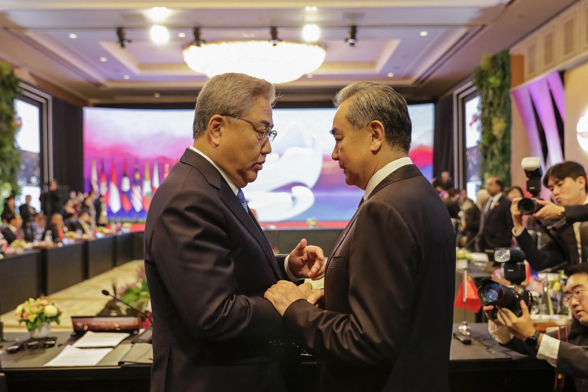 朴镇(Park Jin)(左)与王毅(Wang Yi)在7月13日于印尼雅加达举行的东盟十加三外长会议前合影。摄影师:Mast Irham/AFP/Getty Images中国外交部长王毅告诉韩国外交部长,他支持首尔努力恢复包括日本在内的三方峰会,这表明北京正试图对抗美国推动与其两个亚洲盟友更紧密关系的努力。