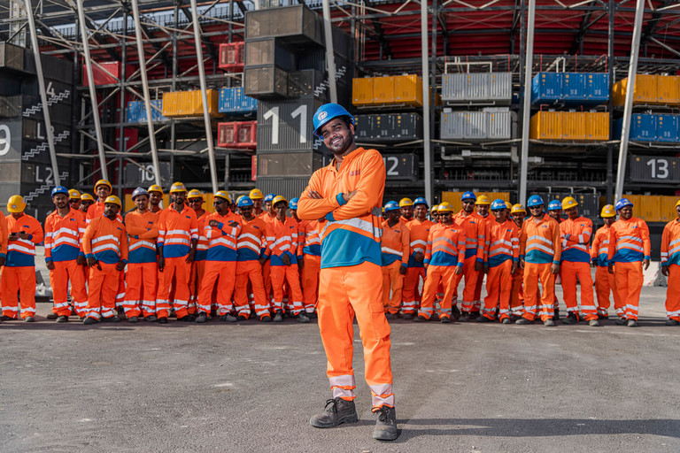 摄影师:Techniche提供每天早晨,卡塔尔数千名建筑工人都会用水浸湿他们的制服开始一天。这个两分钟的仪式启动了一个重要的过程:当工人在户外辛勤工作时 —— 往往在夏季温度超过120华氏度(48摄氏度) —— 他们的制服可以使皮肤温度降低多达8摄氏度(14华氏度),持续长达七个小时。