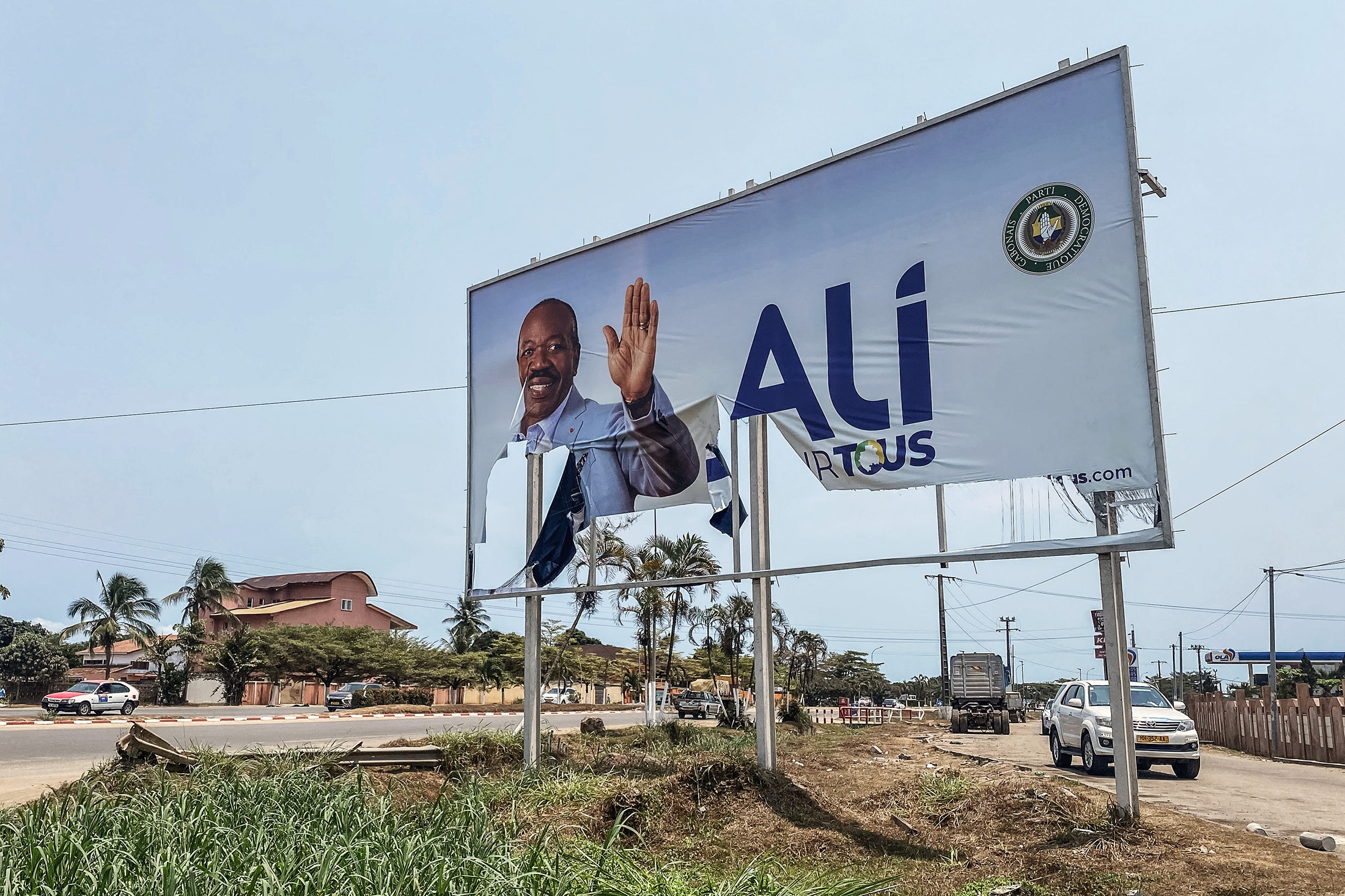 在8月31日,被推翻的加蓬总统阿里·邦戈的竞选广告牌在利伯维尔被撕毁。