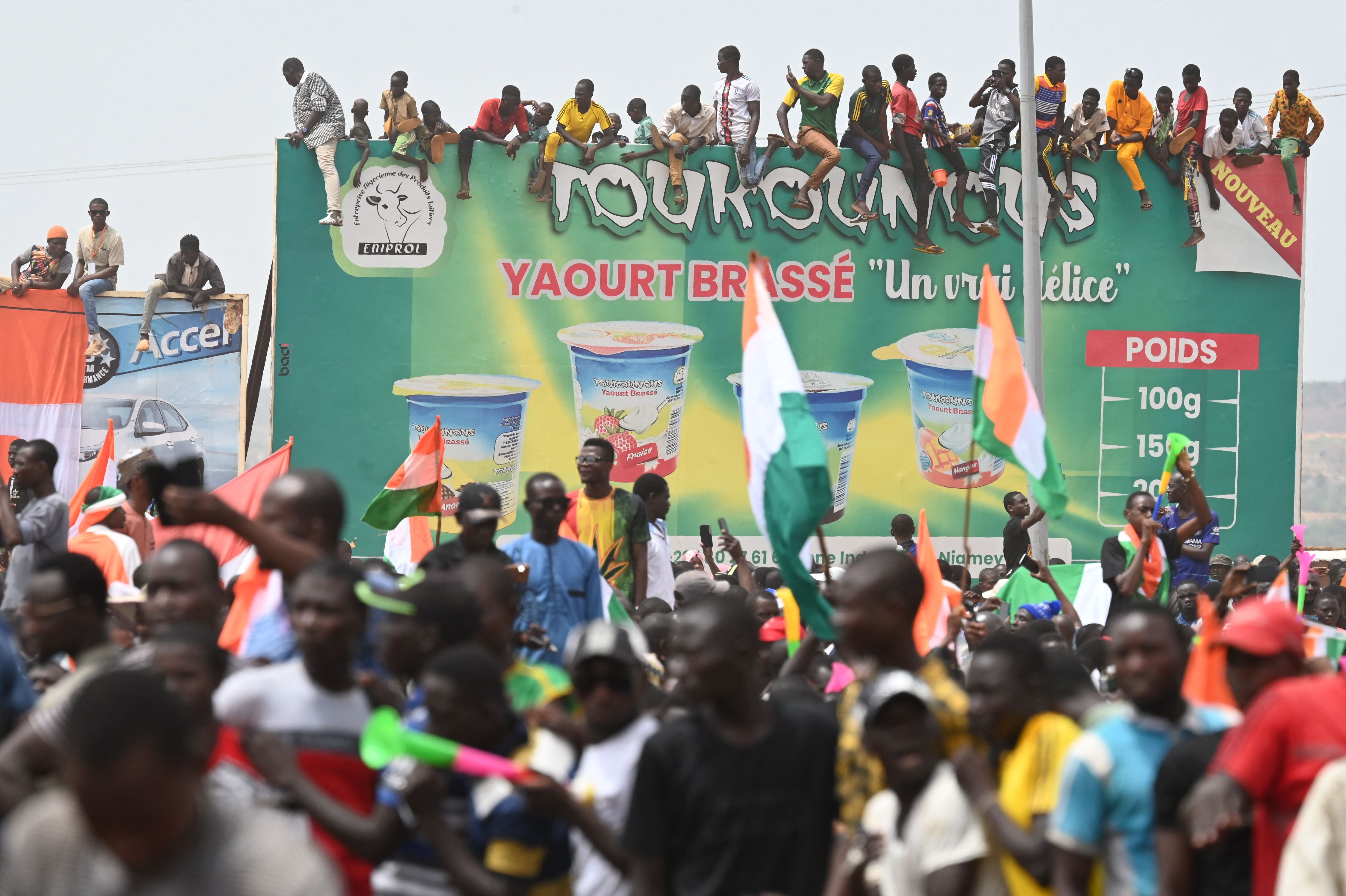 尼日尔国家国家安全委员会支持者在尼日尔和法国空军基地外抗议。