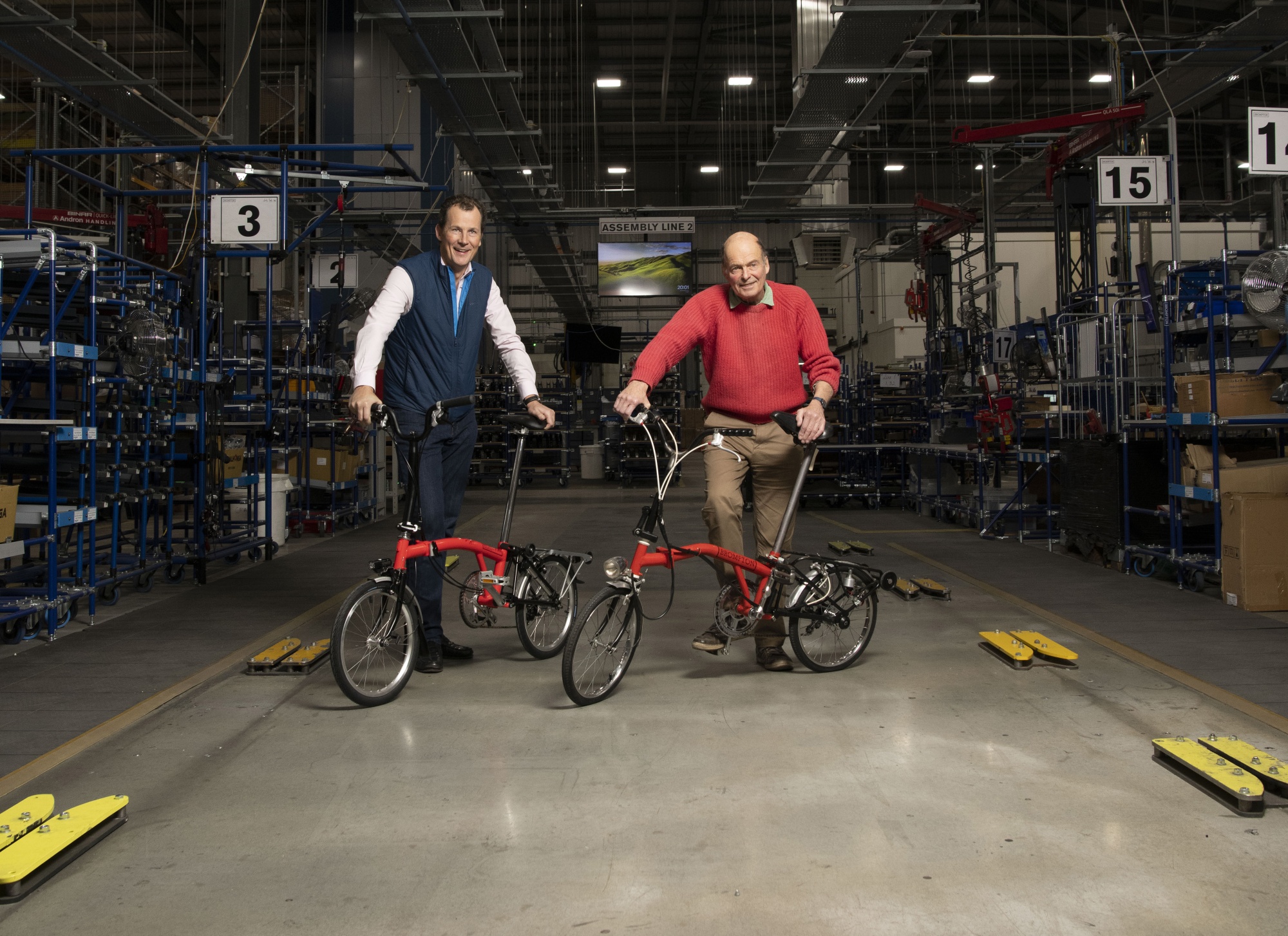 威廉·巴特勒-亚当斯(左)和安德鲁·里奇与第一百万辆自行车,以及马克一号。来源:Brompton我们刚刚在Brompton工厂和总部所在的工业园区周围骑了一小段自行车。49岁的Butler-Adams自2008年以来一直领导着这家公司,当时其创始人安德鲁·里奇退居幕后。Butler-Adams将里奇描述为“非常古怪和狂热狂妄” — 这些特质他认为是积极的。“如果不是因为这两点,他就不会有这辆自行车,因为他花了13年时间设计这辆自行车。”