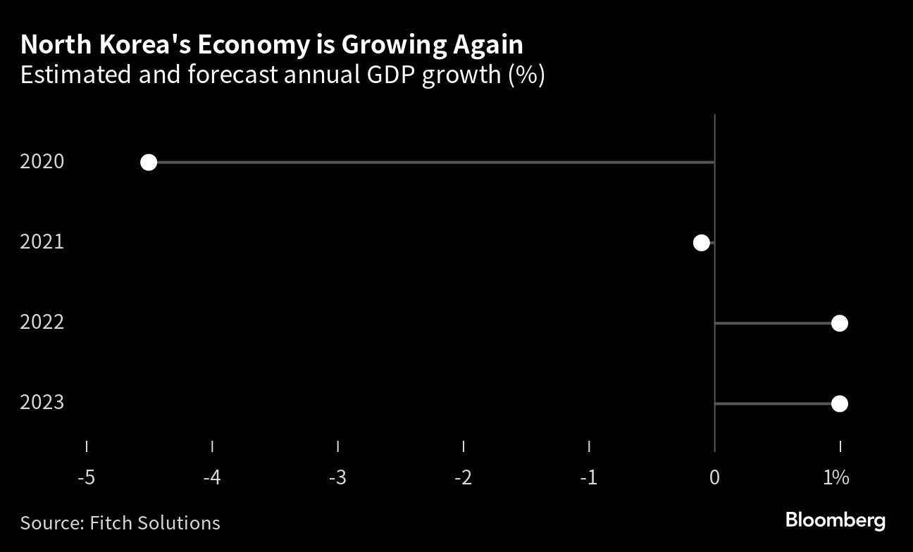 与中国恢复贸易的迹象,中国历来是平壤最大的合作伙伴,导致Fitch Solutions估计朝鲜经济在经历了两年的萎缩后实现增长。不过,它补充说仍存在重大不确定性。