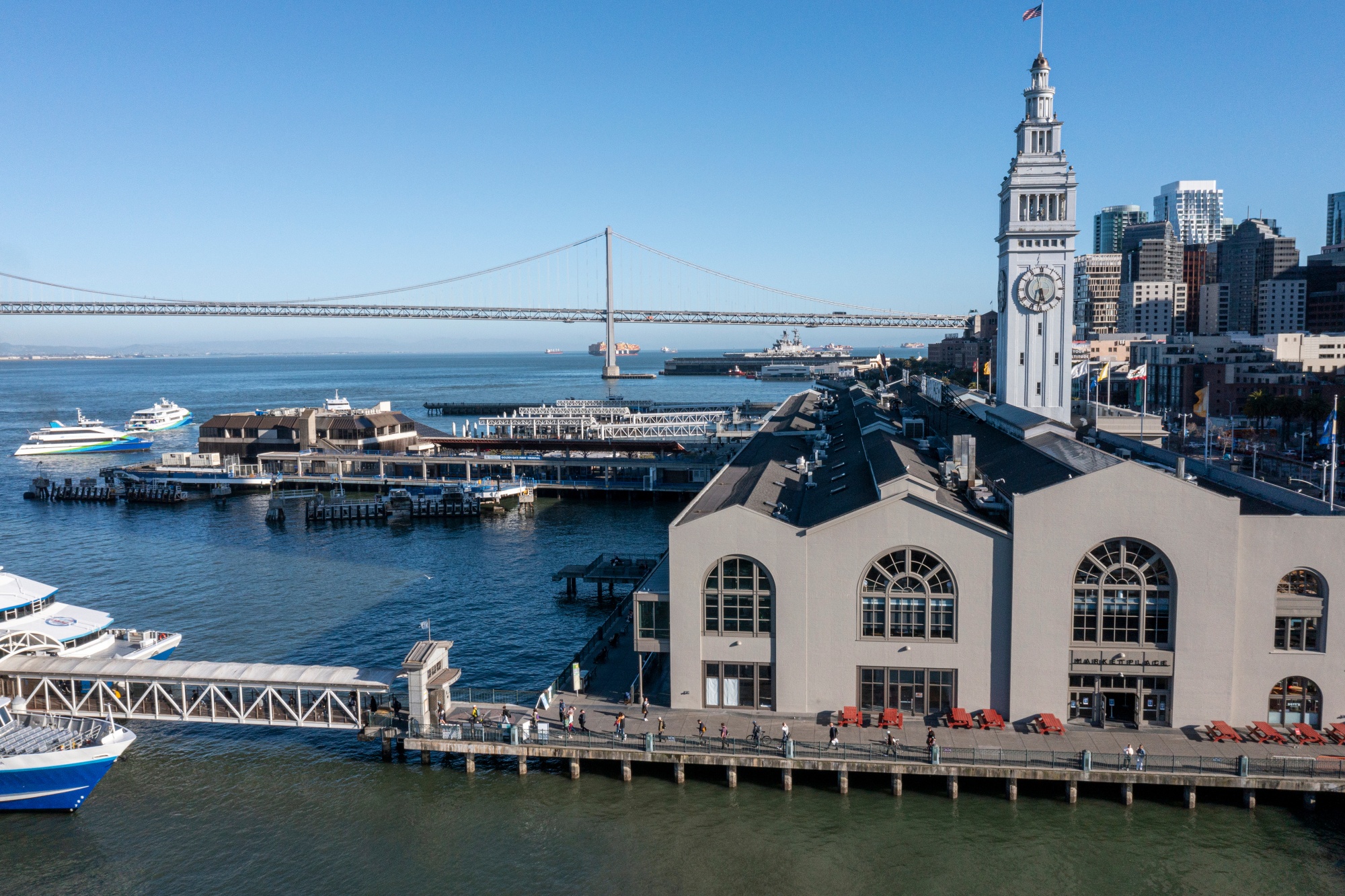 通勤者在旧金山费里大厦排队乘坐渡轮,位于美国加利福尼亚州旧金山,2022年3月21日星期一。