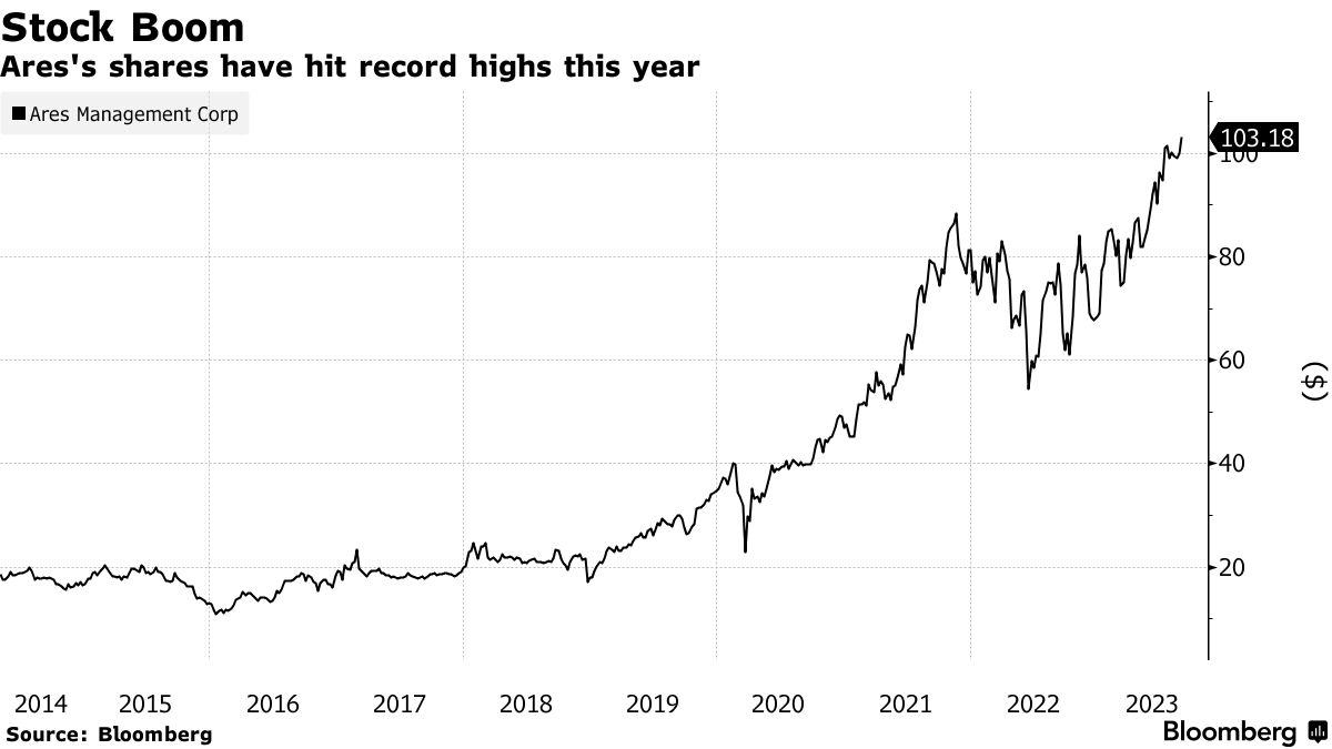 Ares的股价接近历史高位,因为私人信贷成为华尔街最热门的资产类别,而最近的宏观经济波动使之如此。