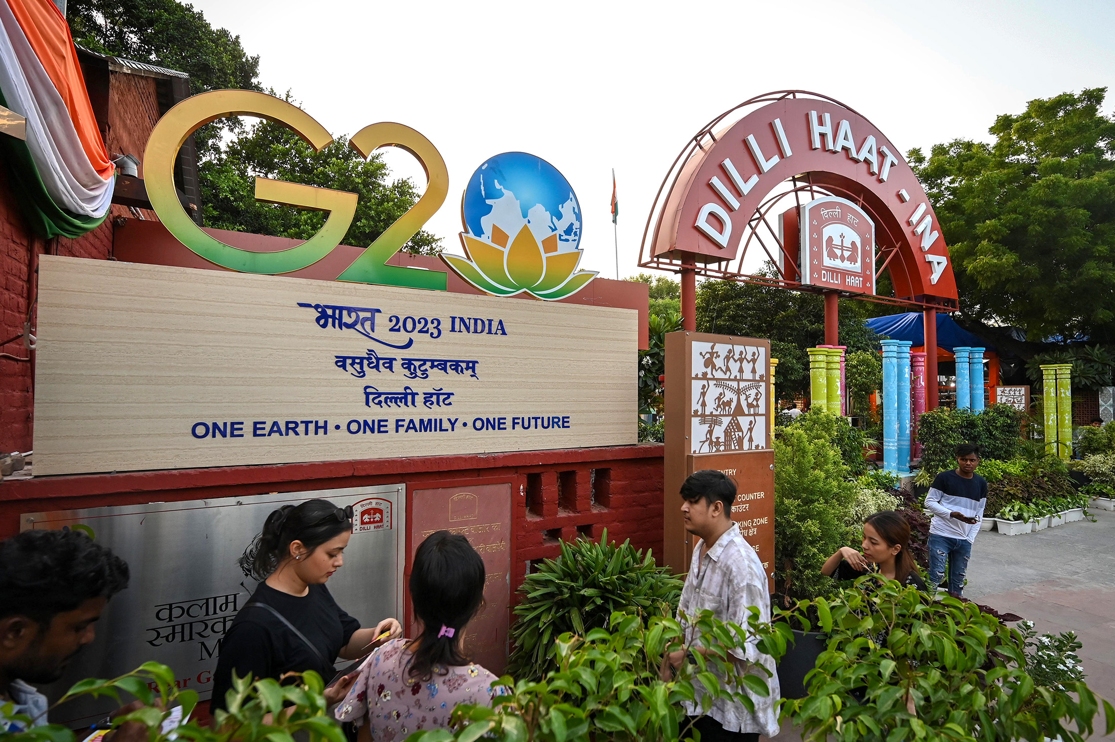 除了峰会带来的常规新油漆和新种植的灌木丛外,印度总理莫迪的形象广告牌和海报也大量出现在首都的加油站、公共交通工具和机场。梵文的运用、湿婆雕像和莲花G20标志,这也是莫迪所在的印度人民党的选举标志,进一步表明这次峰会被纳入了他政府的民族主义印度教议程。为了强调这一点,莫迪在峰会的晚宴邀请函上用古老的梵文词“巴拉特”取代了印度。